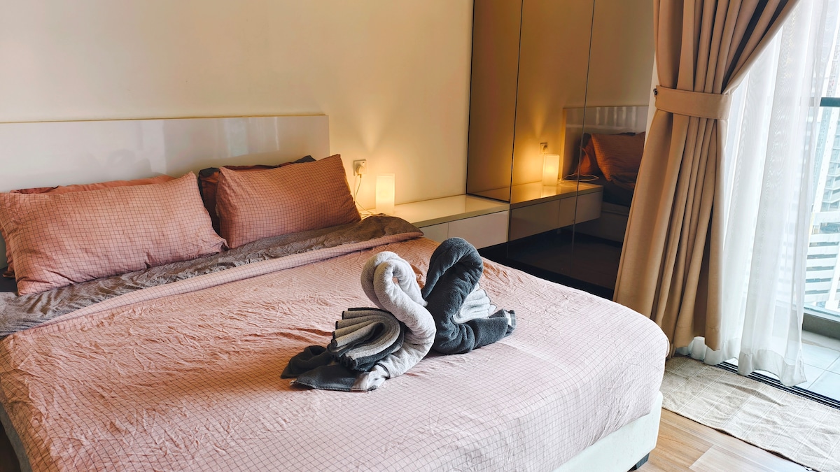 Un nuevo soho de diseño que es ideal para una escapada corta o una estancia larga. Symphony Tower es un nuevo apartamento al que se puede acceder fácilmente a través de Silk Highway, Cheras-Kajang Highway y Sungai Besi Highway. Hay tiendas y restaurantes a solo 5 minutos en coche. Las instalaciones proporcionadas en Symphony Tower son magníficas. Con una bonita piscina, parques infantiles, gimnasio, ping pong, baloncesto, piscina y dardos, sala de vapor y sauna e incluso una zona de golf. Sin duda, un lugar estupendo para viajes de negocios o de placer.