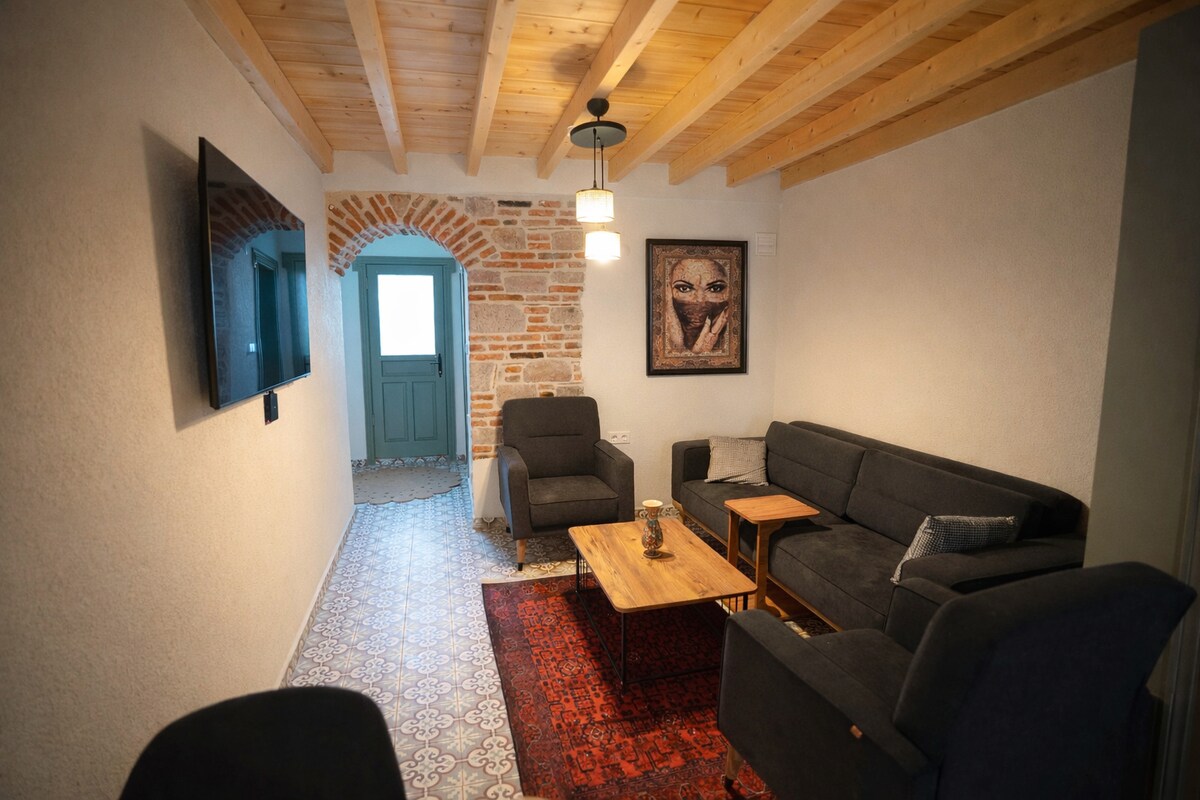 Disfrute de las huellas históricas de esta casa de 135 años, diseñada completamente de acuerdo con el original, en la ubicación más llamativa de las estrechas calles de Ayvalık que huelen a mar, olivos e historia. Está a poca distancia (5 minutos) del centro de la ciudad, restaurantes, el mercado de los jueves, donde se esconde la antigua cultura del Egeo, excursiones en barco, el ferry de Cunda, museos y transporte público. Le prometemos que no solo viajará a través de la historia, sino que la vivirá.