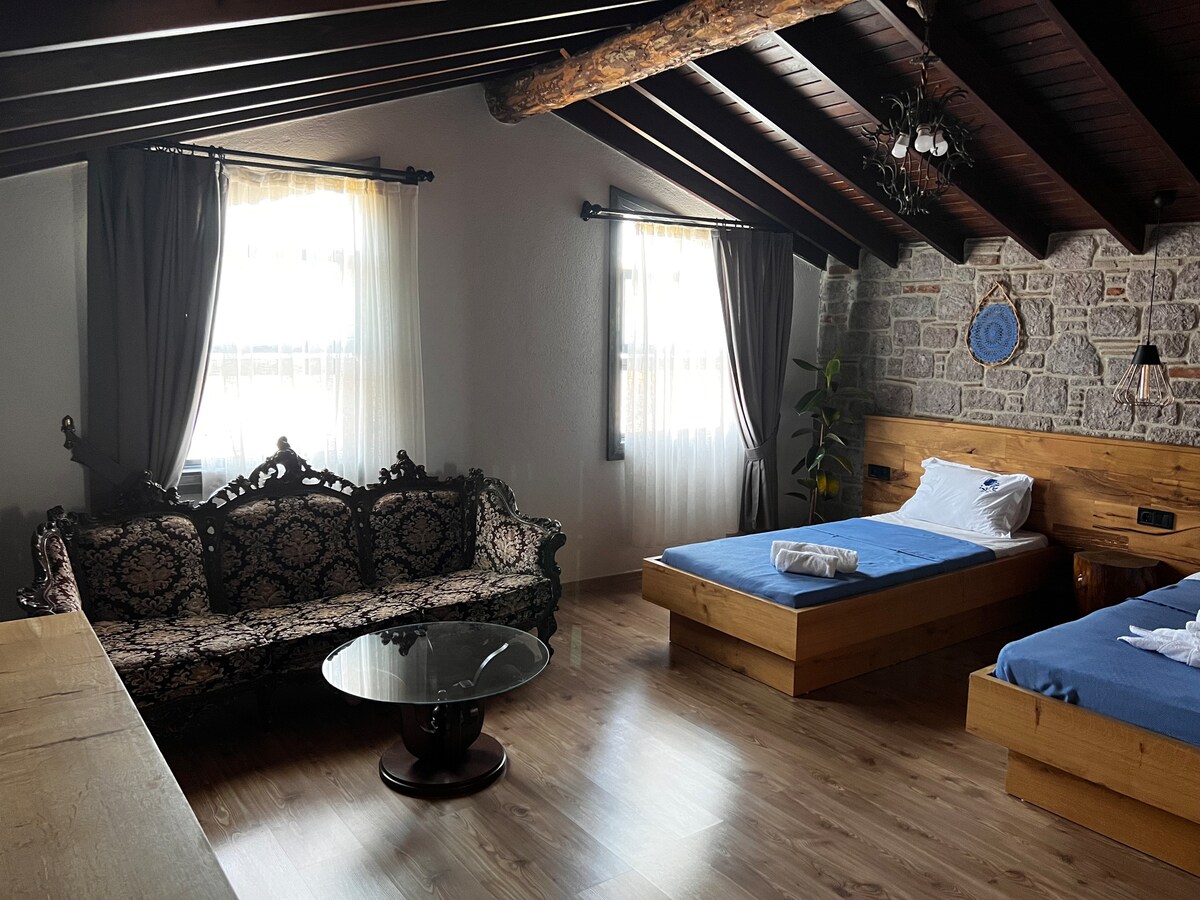 Nuestro hotel está en el centro de Ayvalik, con 6 habitaciones frente a Ayvalik Ayazası Es un hotel boutique moderno-romántico. Todas nuestras habitaciones tienen su propio baño, y las habitaciones tienen TV, aire acondicionado, hervidor de agua y juego de té y café. Esta habitación es planta baja y tiene una cama matrimonial. Tenemos una terraza con una vista muy linda y una mini cocina en la azotea, nuestros huéspedes tienen por la mañana con los productos que compran desde el exterior (sin cocinar) pueden preparar su desayuno y disfrutar de la terraza.