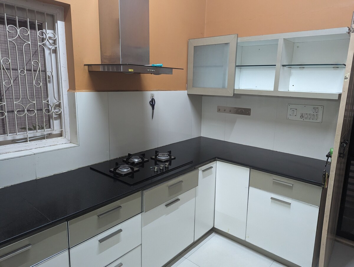 Have fun with the whole family at this stylish place. In a 4 Bed room apartment, tastefully furnished, 24 hours power backup, Hot water all the time, Blue ray disc player, complete kitchen for use, 2 Balcony, 3 Bathrooms with shower and Bath tub, 2 LED Tv with tata play, parking for your car at Basement. It’s Ready for you with clean linen and beds.