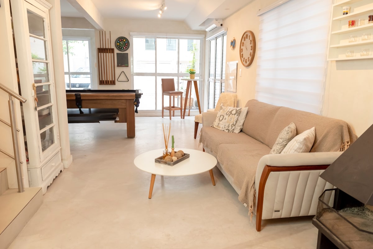 Casa tríplex con salón, comedor, cocina y zona social integrados con barbacoa, mesa de billar y Smart TV. Situado en el centro de BC, a solo 700 metros de la playa (10 minutos a pie), se preparó para alojar con comodidad y conveniencia: -4 camas (3 queen y 1 doble) - Aire acondicionado dividido en 3 dormitorios y sala de TV - Smart TV de 65'' en el salón, de 55'' en la suite principal y de 43'' en la sala de TV -Máquina lava e seca Garaje de 2 asientos ¡Ideal para alojar familias y grupos de parejas!
