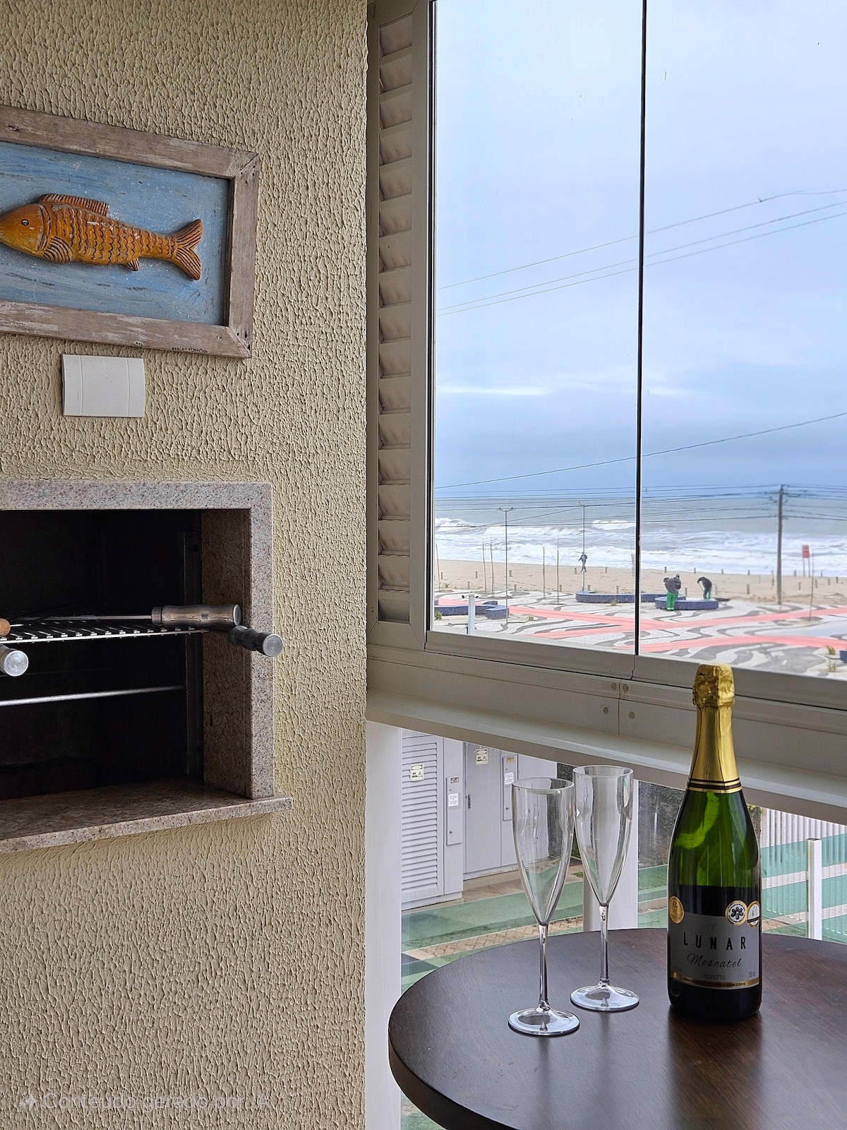 Férias em frente ao mar com churrasqueira e ar.