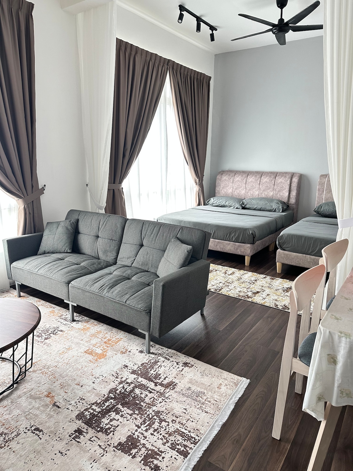 Lujoso y acogedor estudio situado en el corazón de la ciudad, lo suficientemente cerca del lugar más animado de Kuantan. Un mejor lugar para alojarse, ya sea que vengas por placer o por trabajo. Esta sala de estar ofrece un espacio acogedor para relajarse con un televisor de 43 pulgadas con Netflix 4k y A poca distancia de la universidad TARC Distancia en coche: > 5 minutos a UIA , IIUM >5 minutos al Centro Médico Kuantan (KMI) A menos de 10 minutos de Pusat Bandar Kuantan >15 min a tol Kuantan >15 min al aeropuerto de Kuantan >15 min a Gebeng Industrial >20 minutos a Teluk Chempedak