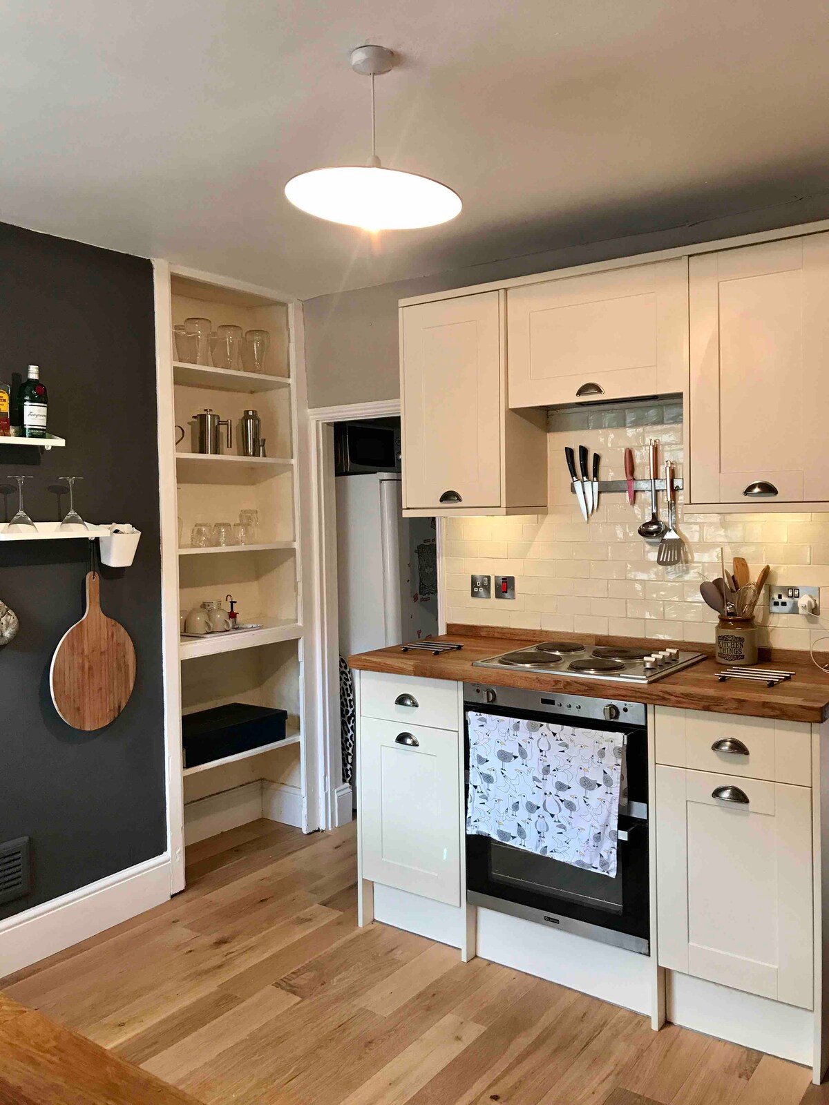 Elegante casa victoriana adosada en una carretera privada en la ciudad comercial de Banbury, en Oxfordshire. Disfruta de la acogedora sala de estar con estufa de leña, el soleado patio o un paseo por la campiña local. La casa está a poca distancia a pie de la estación y muy bien situada para visitar Bicester Village, Silverstone, Aynhoe Park, el palacio de Blenheim y los pueblos de Cotswolds. La estación con trenes rápidos a Londres, Oxford y Birmingham está a 10 minutos a pie.