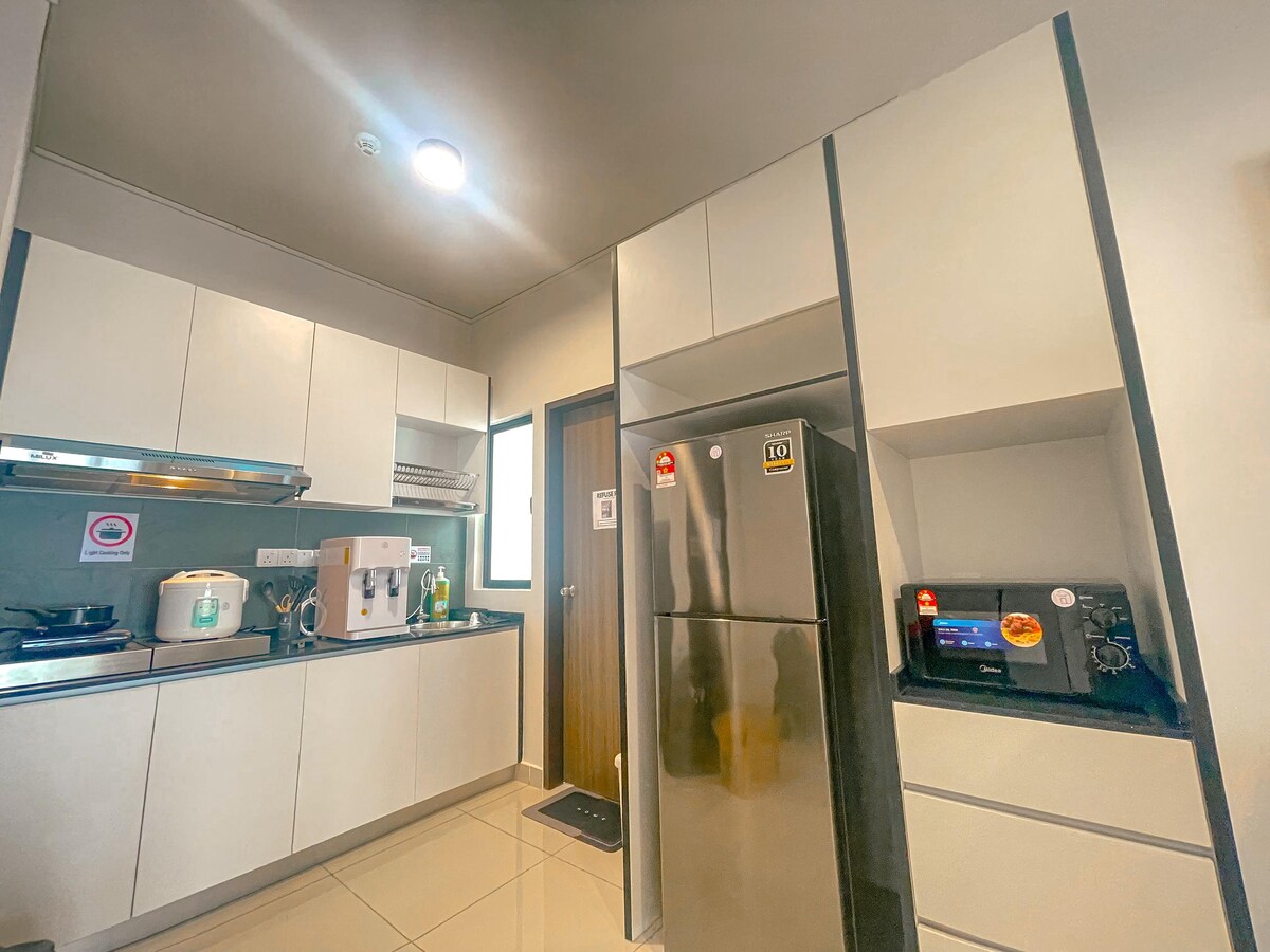 Bienvenido a THRE @ Tiara Desaru, un lugar donde puedes disfrutar de la playa privada, la piscina infinita, el jardín verde y pasar tiempo de calidad con tu amor en nuestra unidad. La habitación está muy bien diseñada, ordenada y tranquila para una pequeña familia. Ofrecemos: Almohadas, edredón, sábana de colchón Calentador de agua, toalla y artículos de tocador Secador de pelo, cubiertos de cocina, silla de bebé, Hervidor de agua eléctrico, refrigerador, plancha seca, lavadora (sin detergente) máximo 3 adultos o 2 adultos con 2 niños
