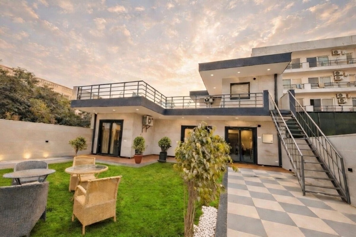 Vaycasa: ¡Tu acogedor refugio de 1BHK en Gurugram! Anfitriones: Shubham y Sahil ¡Relájate en el vibrante corazón de Gurugram! Este elegante 1BHK en el quinto piso en el Sector 45 ofrece vistas serenas a la terraza y comodidad moderna. Cerca de Cyber Hub, a 6–10 minutos en auto de Medanta, los mejores restaurantes, mercados, autopistas principales y a solo 30 minutos del aeropuerto IGI. Experimenta los servicios premium de Gurugram con entregas ultrarrápidas de Zomato y productos básicos de Blinkit, ¡directo a tu puerta! Ideal para viajeros de negocios, parejas o cualquier persona que busque un ambiente acogedor