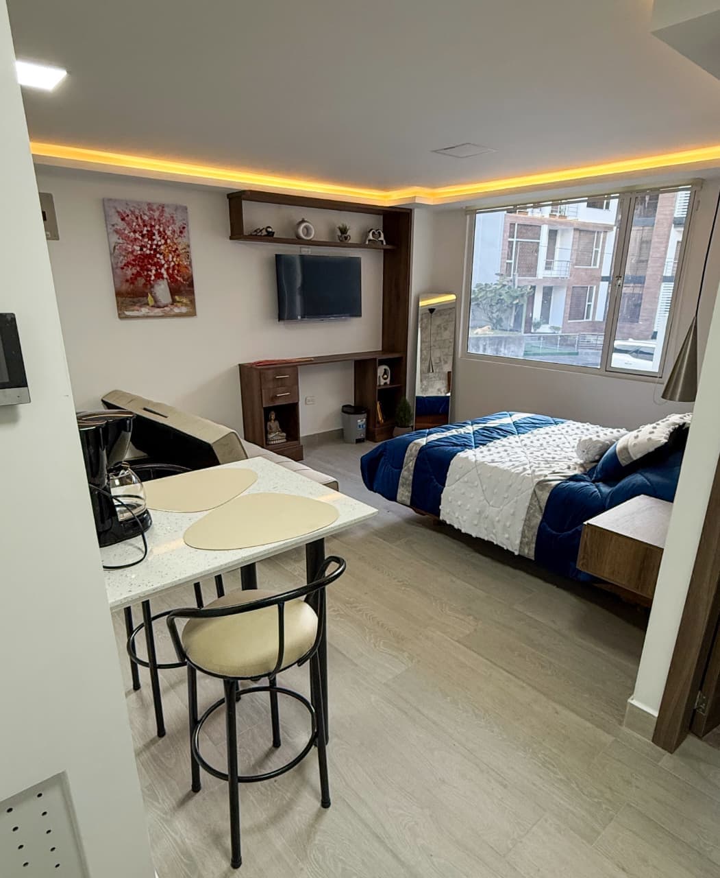 Acogedor departamento espacioso y luminoso en el centro de Baños. Localizado a apenas 2 cuadras del parque central, de bancos, restaurantes, cafeterías, farmacias y supermercados. El barrio es tranquilo y dispone de un mini mercado y una panadería cercanos. Además, se encuentra a 7 cuadras de las aguas termales y a 3 cuadras de acceso a los senderos ecológicos. La configuración del departamento es de una sala, cocina, habitación, área de trabajo, baño completo y terraza con hamaca