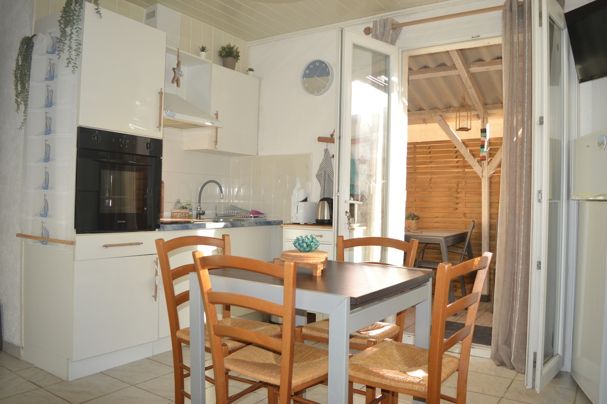 Disfruta de unas vacaciones en un chalet tradicional de madera sobre pilotes, uno de los últimos en conservar el espíritu y la apariencia de los chalets originales construidos en Gruissan. Con una ubicación ideal a solo 150 metros de la playa y a 300 metros de las tiendas y restaurantes locales, este pequeño remanso de paz te permite disfrutar plenamente de tu estancia. Desplázate a pie o en bicicleta y deja el coche atrás si lo deseas.