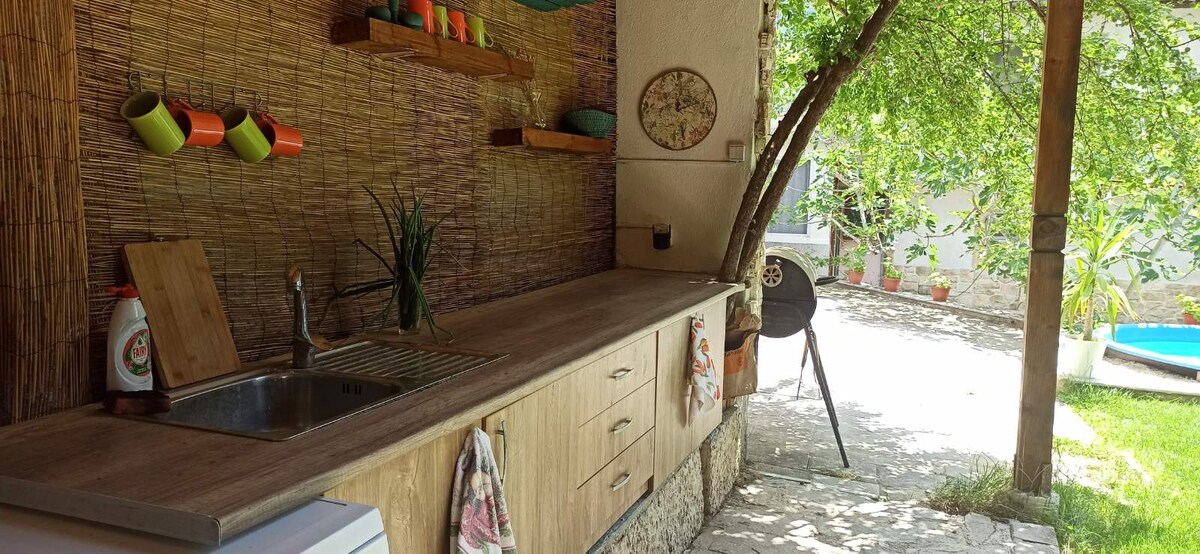 Amplia villa de tres plantas: 4 dormitorios, cocina totalmente equipada con nevera y lavavajillas, comedor con aire acondicionado, 2 baños completos, terraza con columpio en la segunda planta, barbacoa en el patio, un jardín con árboles frutales (ciruelas, manzanas, etc.). Está rodeado de maravillosos lugares de descanso: a 10 minutos en coche, se puede llegar a la presa de Tsonevo con las Rocas Maravillosas, el Ecocomplejo Sherba, un bosque, cuevas, una reserva de huevas y jabalíes, a 25 min. - de la ciudad. Provadia y Ovec, a 40-50 minutos de la playa de Shkorpilovtsi y Varna.