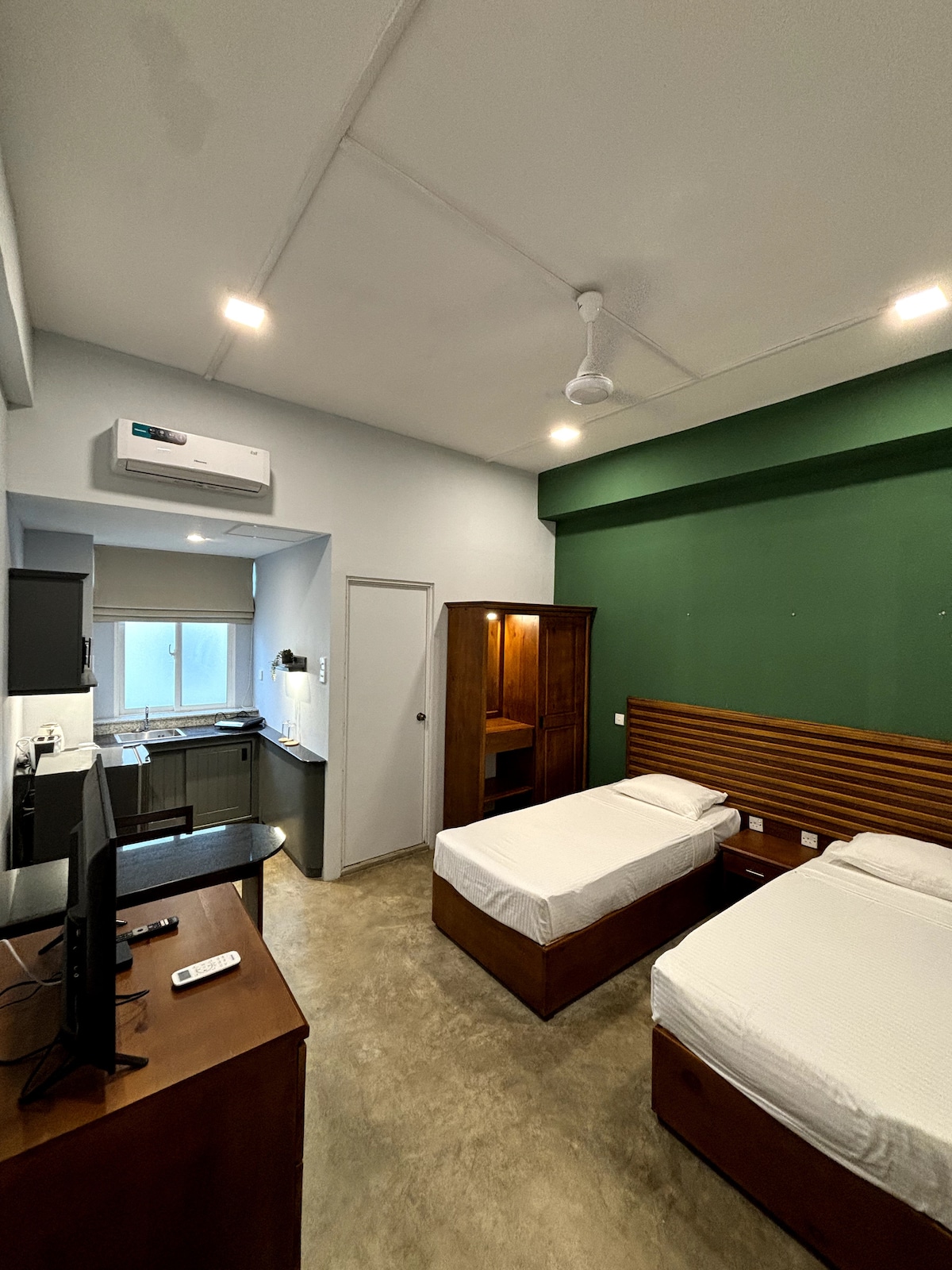 Relájate con toda la familia en este lugar tranquilo para hospedarte. Ubicado en la vibrante Vajira Road, este acogedor y elegante apartamento Colombo 04 combina la energía de la ciudad con el encanto hogareño. A pocos pasos de cafeterías, playas y la animada vida local. Ya sea que estés aquí para explorar, trabajar o relajarte, este elegante espacio ofrece comodidad, carácter y un ambiente urbano perfecto. Tu historia de Colombo comienza aquí.