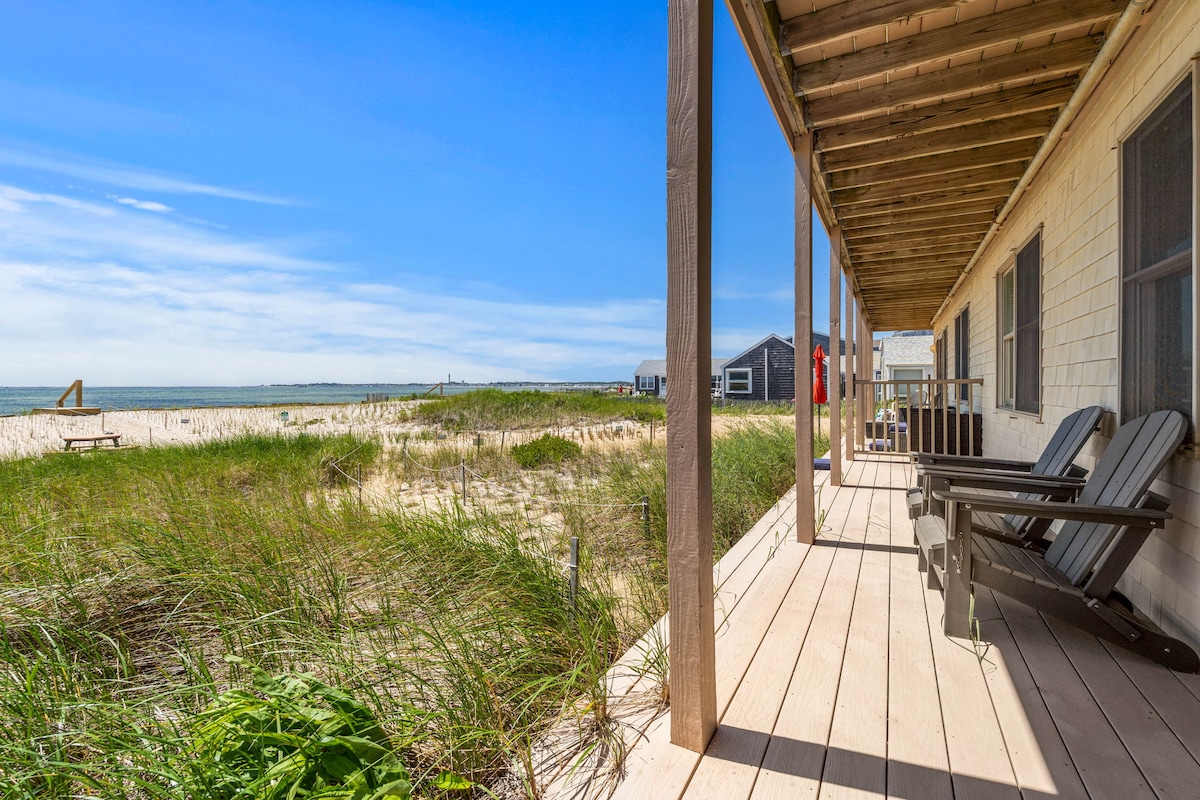 Lavish 812 sq ft two-bedroom condo in North Truro with walkout from the deck to a private beach on Cape Cod Bay. The condo is spacious with stunning views from the living room and bedroom. The deck is perfect to watch gorgeous sunsets. The colors on Cape Cod Bay are incredible. A full kitchen with stainless steel appliances, granite countertops and high-end cabinets. Linens provided for a hassle free vacation. Peaceful place to unwind and rejuvenate or quick ride into Provincetown for a blast.