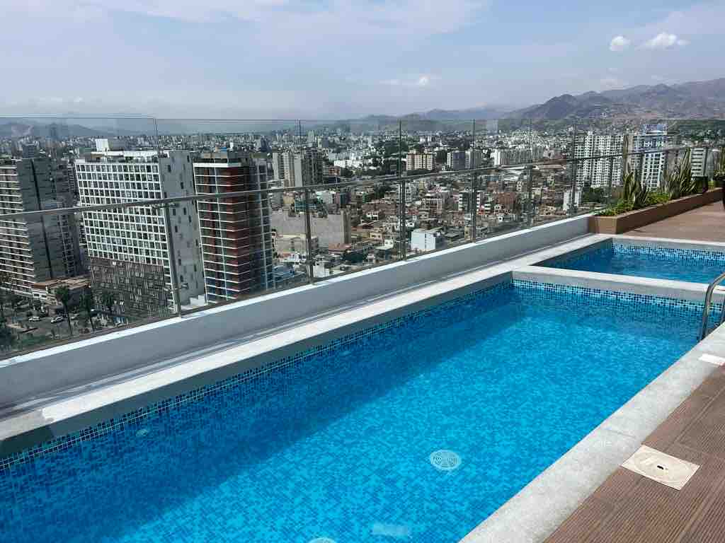 Piscina en la azotea de un increíble loft con vistas a Barranco y gimnasio