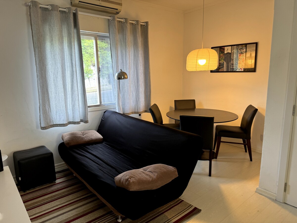 Brisa do Guaíba es un apartamento amplio y acogedor en la zona sur de Porto Alegre, a pocos pasos del paseo marítimo y su famosa puesta de sol. Cerca de Barra Shopping Sul y Pontal, con carriles bici y catamaranes. A 5 minutos del Estádio Beira-Rio y CT Cristal, a 15 minutos del Centro Histórico y UFRGS, a 25 minutos de PUCRS, con una amplia gama de transporte público y fácil acceso a varios puntos de la ciudad. (1 cama doble y 1 caja de bicama)