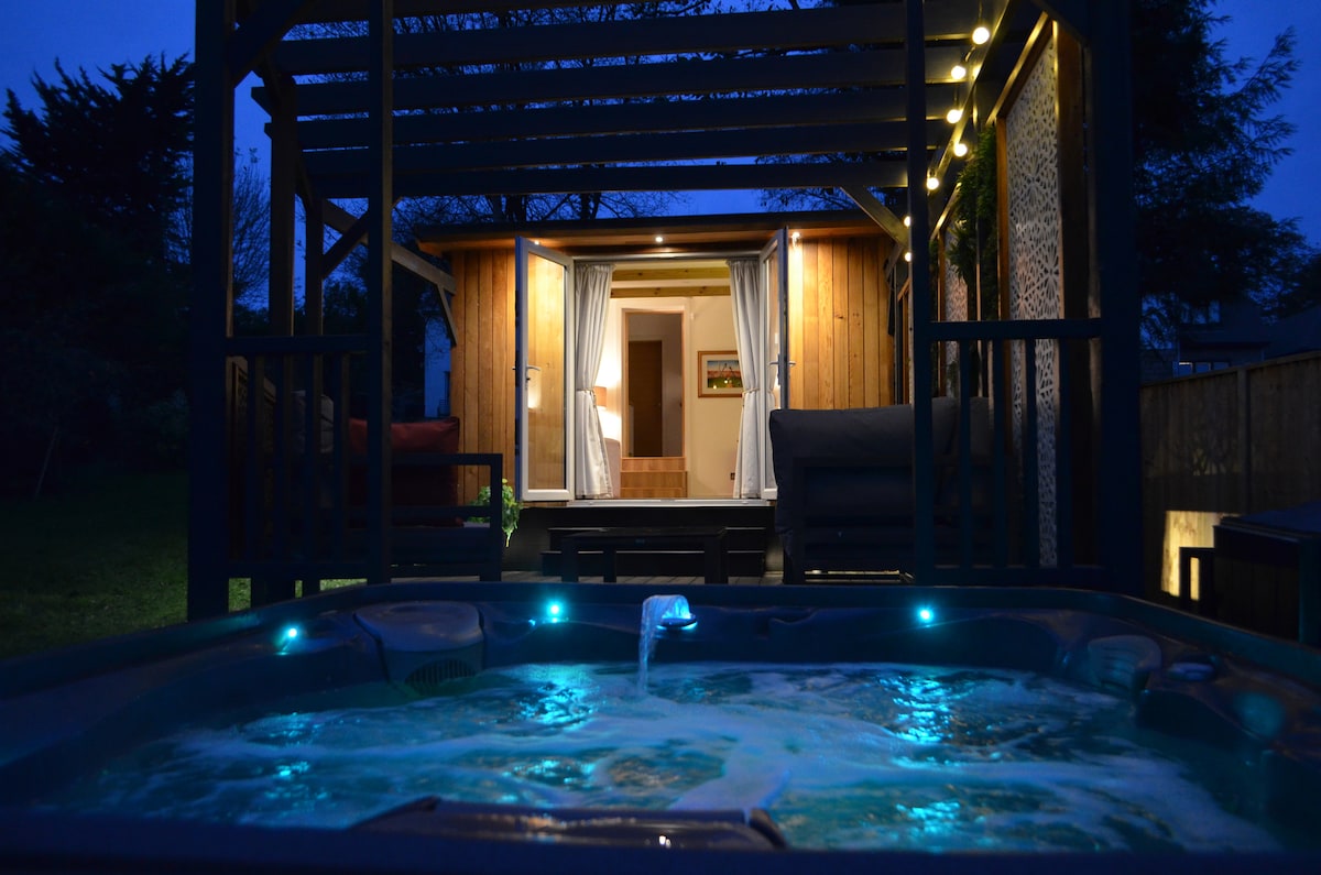 'Enchanted' es una hermosa cabaña de pino aislada con una gran bañera de hidromasaje en el borde de The New Forest. Una cama tamaño king en el dormitorio principal tiene capacidad para 2 personas y un pequeño sofá cama en el salón con capacidad para 2 niños pequeños o un adulto. La cocina totalmente equipada se encuentra entre el dormitorio y el acogedor salón de bajo nivel que conduce a una gran zona cubierta con un montón de asientos para esas noches al aire libre. La «Mejor playa del sur - 2025» según The Times está a menos de una milla de distancia. También se admiten perros.
