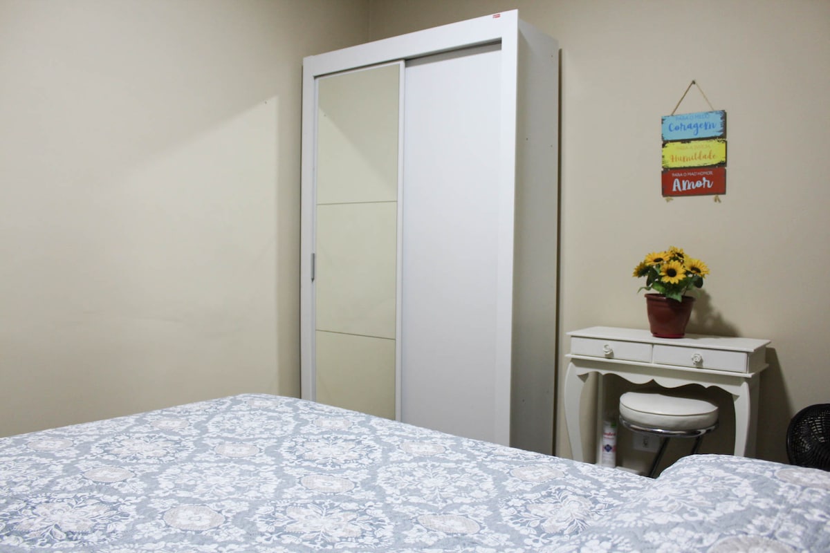 📍 Estudio completo, moderno y equipado, ¡ubicación privilegiada! Hasta 2 personas, con aparcamiento cubierto, wifi, piscina, gimnasio, junto a Alphaville. 🛏 Acerca del espacio: Nuevo estudio, bien amueblado, cómodo y muy funcional. Perfecto para parejas, viajeros de negocios o aquellos que vienen a disfrutar de la región de Barueri/Alphaville. 🛋 Equipado con: • Cama de dos plazas. • Televisor LG de 50 pulgadas • Ventilador • Cocina completa. • Mininevera y mesa • Ropa de cama y baño incluidas • 1 plaza de garaje