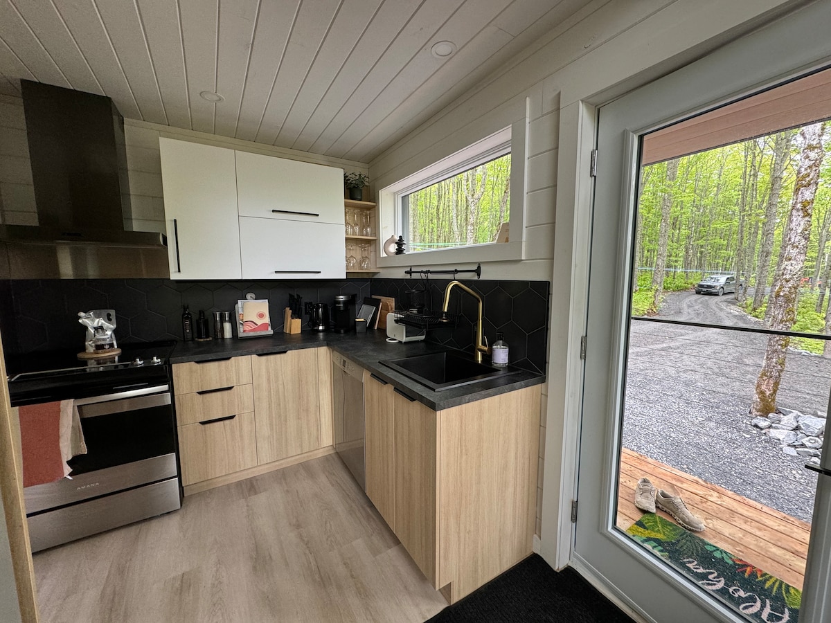 En un gran terreno boscoso y con vistas al magnífico lago Matapédia, esta nueva construcción, totalmente equipada, puede alojar de 2 a 6 personas con dos camas queen, una de ellas en un magnífico altillo accesible con una escalera y un sofá cama. Ideal para una estancia en pareja, en familia o simplemente para unos días de teletrabajo, este mini-chalet será perfecto para usted. En verano, también tendrá acceso a un muelle para disfrutar plenamente del lago. *VUS recomendado en invierno