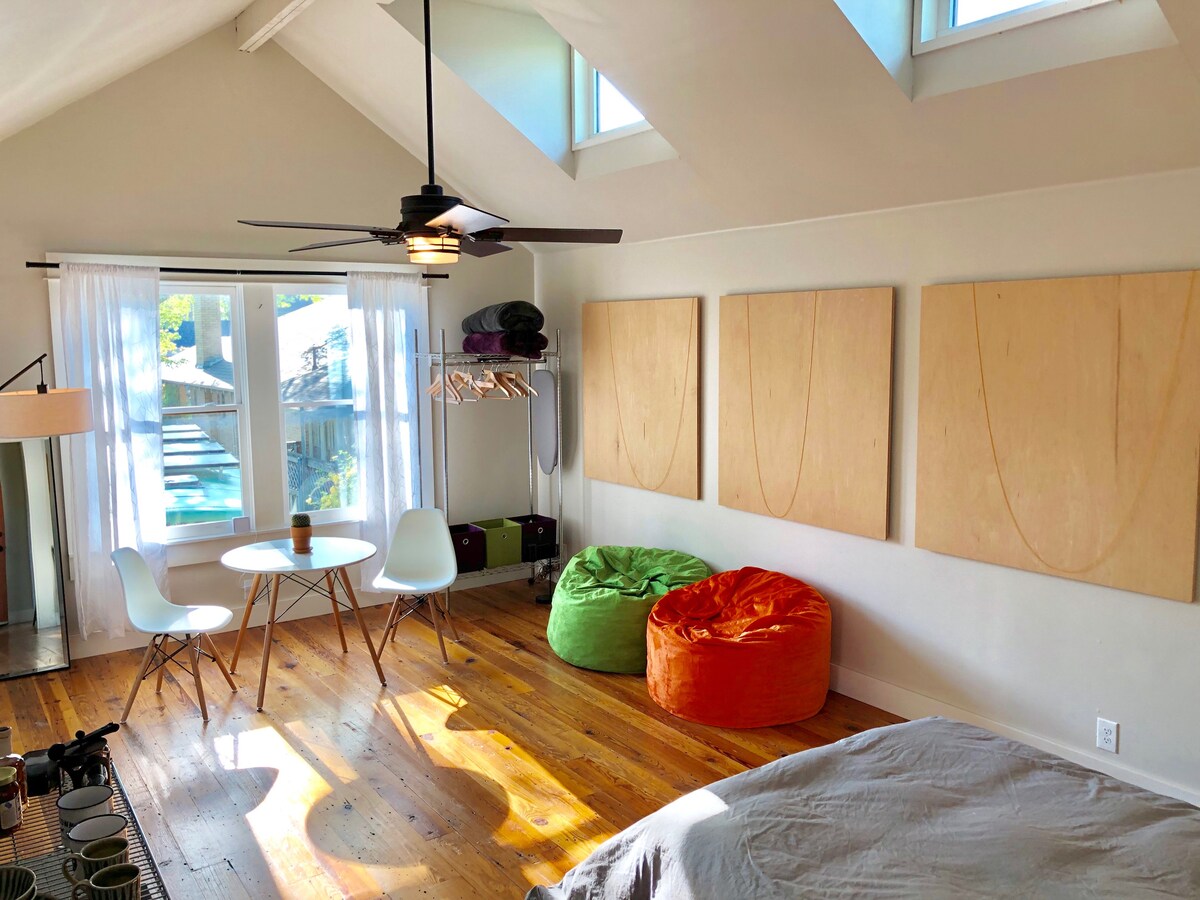 Estamos ubicados en el histórico barrio de Fairmount, a solo 10 minutos a pie de Magnolia. El espacio es un moderno apartamento estudio por encima del garaje con techos abovedados, cocina completa, comedor, patio, centro de entretenimiento, cama tamaño queen y baño con ducha a ras del suelo. Está lleno de comodidades como puerta de enlace wifi dedicada, acceso a servicios de streaming, colchón Leesa, café premium y mucho más. ¡Nuestro objetivo es que te sientas cómodo y en casa durante tu estancia!