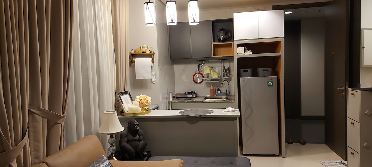 Lujo frente al mar en One Residence Batam Alójate a solo unos pasos de la terminal de ferris de Batam Centre y del Mega Mall, para que viajar y comprar sea increíblemente cómodo. Nuestro moderno apartamento ofrece unas vistas espectaculares al mar, combinando comodidad y estilo para una estancia verdaderamente relajante. Disfruta de las excelentes instalaciones: piscina, gimnasio, acogedoras cafeterías, restaurantes y tienda de comestibles. Rodeado de las mejores opciones gastronómicas de Batam, como Ikan Bakar Cianjur y Ocean Garden Seafood. Es un alojamiento fantástico.