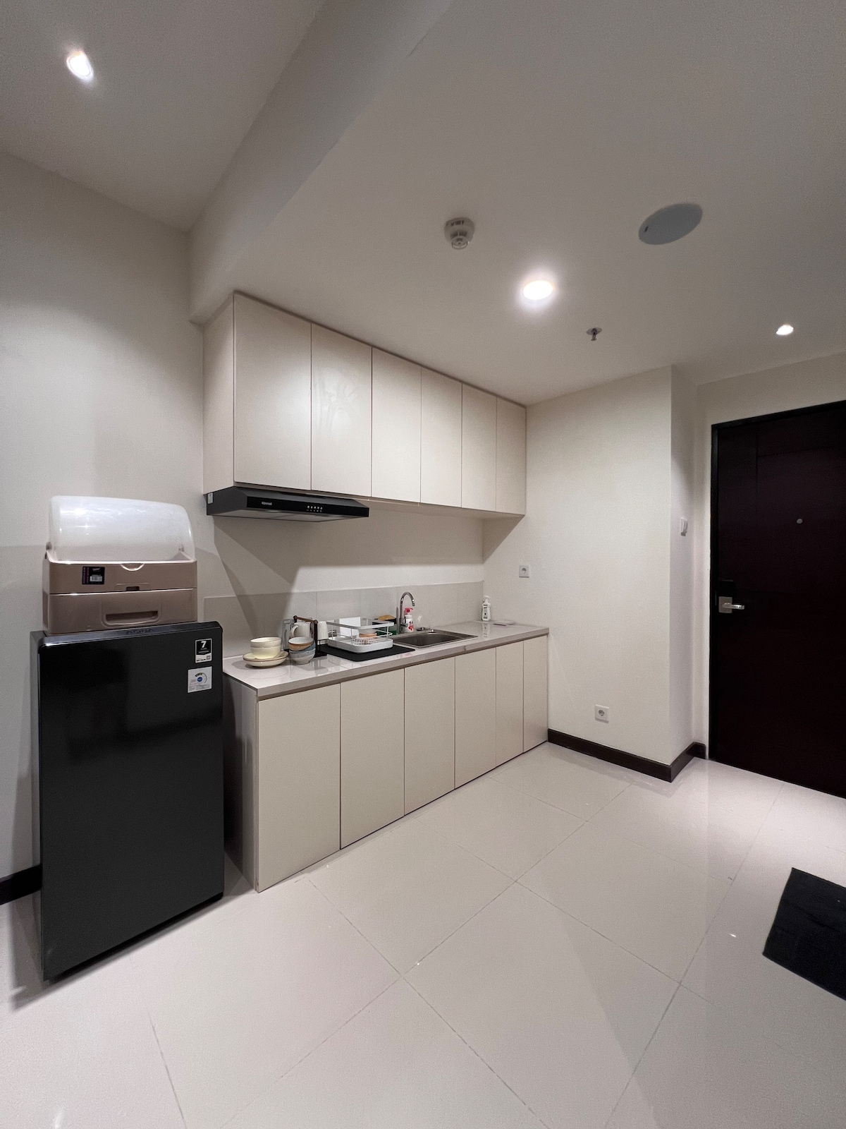 Located at the 53th floor (seaview) of the pollux habibie apartment, the studio has been furnished and designed in accordance to welcome traveler looking for relax and warm atmosphere. If you feel the water moving slowly when you are shower, you can open the floor drain. after taking shower , please remember to close it again