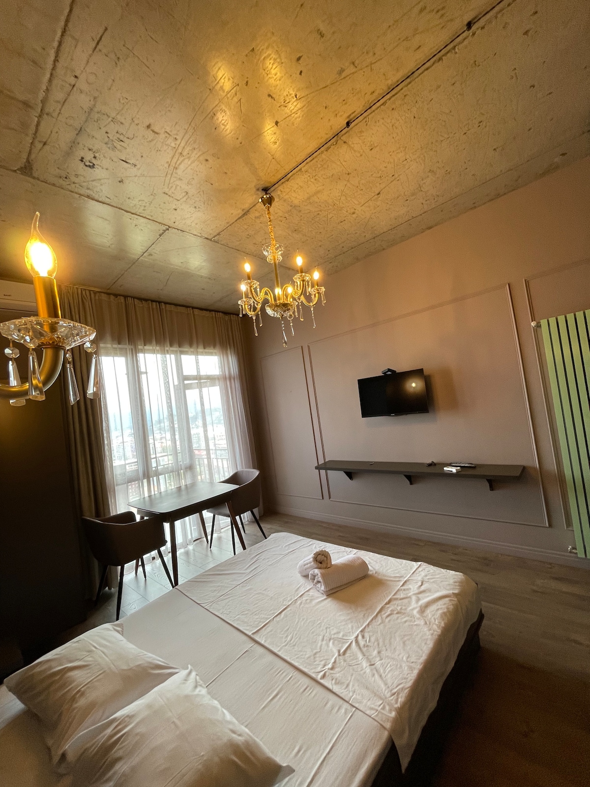 Welcome to Porta Exclusive Loft by Aesthaven - a new apartment on a high floor of the iconic Porta Batumi Tower. Enjoy panoramic views of the Black Sea, modern design, and quality appliances. Every detail is created for your comfort. The apartment accommodates 1 to 4 guests. Great location - just steps from the Old Town, the seaside boulevard, restaurants, and main attractions.