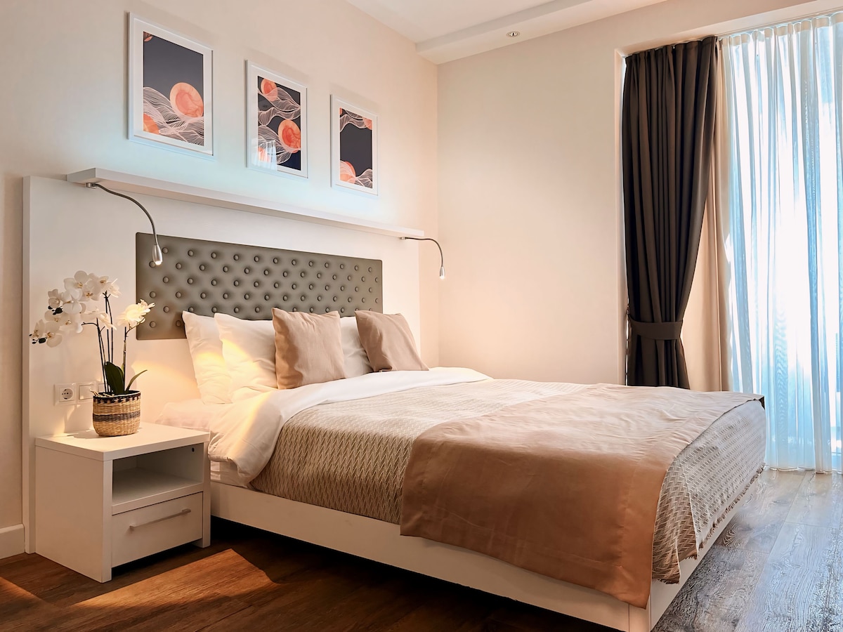 Our facility is decorated with simple and elegant colors. It has everything you need to live in and the located in city center. We offer not only sea but also city, lake and mountain views. At the same time our guests have opportunity to taste local delicacies free of charge, including delicious Georgian wine, cheese and dessert. Our facility is new and we will have special surprises for our first guests.