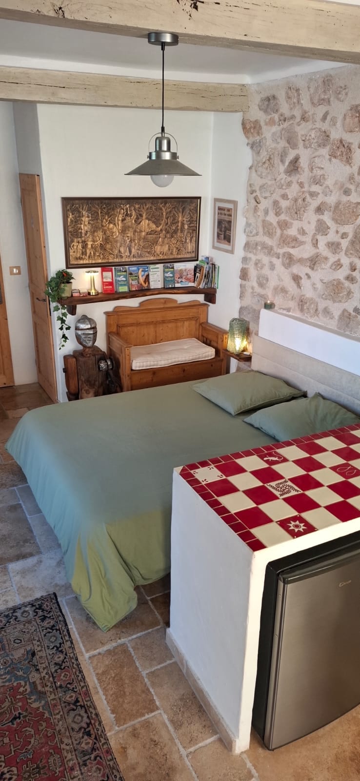 Bienvenido a su estudio «Coeur de Verdon», que se encuentra en la planta baja de nuestra casa con carácter del siglo XVI, reformada por nosotros, etiquetada por la Fundación del Patrimonio y en la que vivió Charles Aznavour a principios de los años 40. Se encuentra en el corazón del pueblo de Quinson, a dos pasos de la iglesia y de nuestro bar «Le petit duc». Hay un aparcamiento gratuito de 4 plazas disponible junto al alojamiento. Ropa de cama y gastos de limpieza incluidos.