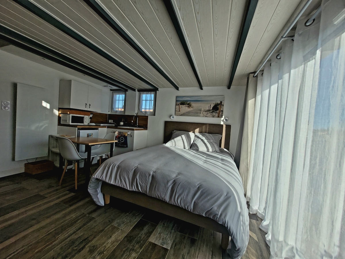 Estudio independiente situado en nuestra casa, cerca del centro y disponible desde el domingo por la noche hasta el viernes por la mañana, ideal para estudiantes en prácticas o trabajadores desplazados. Este estudio de 15 m², totalmente renovado está perfectamente equipado con cama de 140 cm nueva, cuarto de baño abierto (ducha y WC), zona de cocina. Disfrutará de nuestro alojamiento por su cómoda cama y su independencia. /!\ Alojamiento ESTRICTAMENTE para no fumadores, no se permite fumar en frente de la casa.