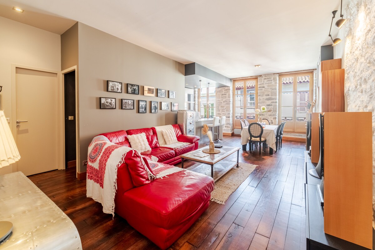 En un hermoso edificio de estilo haussmaniano en el corazón del centro de la ciudad de Bayona, el encanto de lo antiguo para este coqueto apartamento situado en el segundo piso sin ascensor - bonita sala de estar con chimenea ,parquet antiguo ,grandes ventanales y techos altos Posibilidad de aparcamiento privado situado a 2 minutos a pie - Los museos, tiendas , restaurantes, mercado , autobús y todos los servicios a poca distancia a pie en 5 minutos. Aparcamiento privado a 50 m - ,AUTORIZACIÓN CIUDAD DE BAYONA EN REGLA
