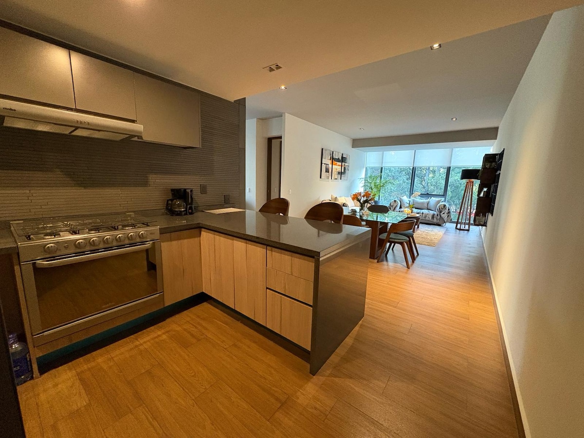Lux Flat Polanco con vistas al jardín