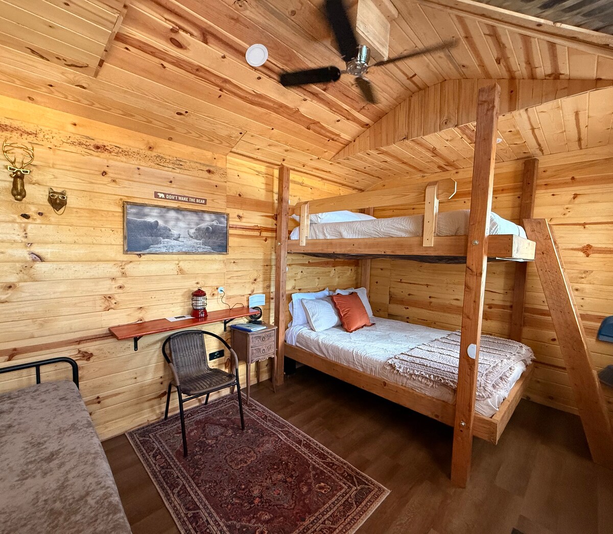 Vuelve a conectar con la naturaleza en esta escapada inolvidable. ¡Ubicado a pies del agua en Bear Lake! Disfruta más de una experiencia de acampada con un aterrizaje suave. (cama acogedora, segura y cálida después de un día lleno de diversión en la playa ) Casitas están ubicadas en áreas de acampada primitivas lejos de la ajetreada ciudad . Siéntate alrededor de tu fogata por la noche o pasa el rato en el porche y contempla la puesta de sol. Un giro en una experiencia de acampada sin sacrificar tu acogedora cama por la noche. Nuestro pequeño paraíso te espera (: