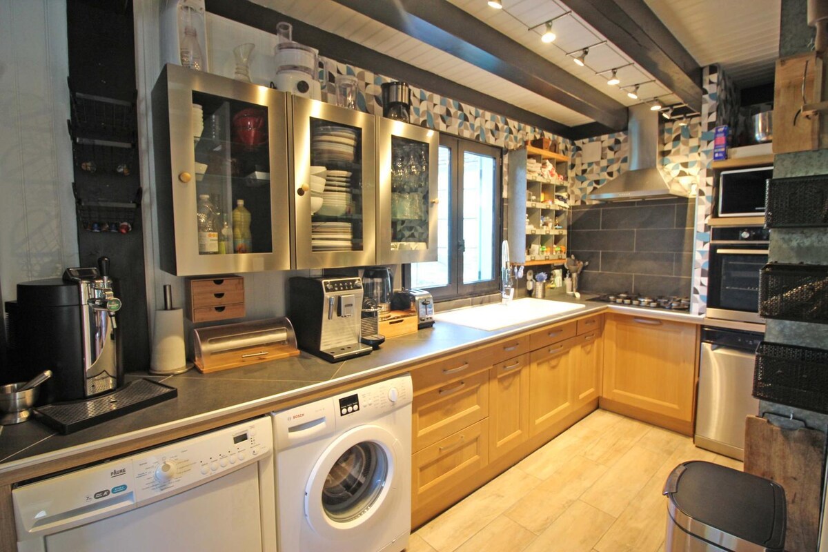 Descubre En Haut du Paradis un joyero contemporáneo de 94 m² bañado en luz☀️, idealmente situado en Sadroc, en el corazón de la Corrèze. Con sus dos dormitorios tamaño king🛏️, su cocina totalmente equipada y su spa privado de 5 plazas con vistas espectaculares, es el lugar perfecto para relajarse con total privacidad. Disfruta de un confort de alta gama: aire acondicionado❄️, mobiliario de diseño a medida, baño elegante y una pared de piedra que añade encanto y carácter.