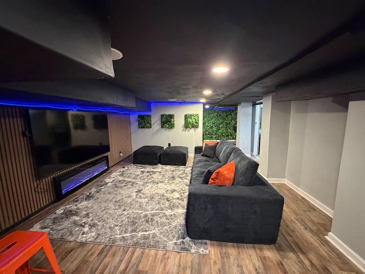 Un precio con descuento para reservas semanales y mensuales. Si tienes pensado quedarte más de un mes, podemos ofrecerte una tarifa especial. Disfruta de todo el apartamento con todas las comodidades de un hogar. El lugar está muy limpio. Disfruta de tu propia entrada privada y aparcamiento. La sala de estar está equipada con sofá de cuero, TV de pantalla grande y chimenea. Hay un baño completo con bañera y ducha. El dormitorio tiene una cama tamaño queen.