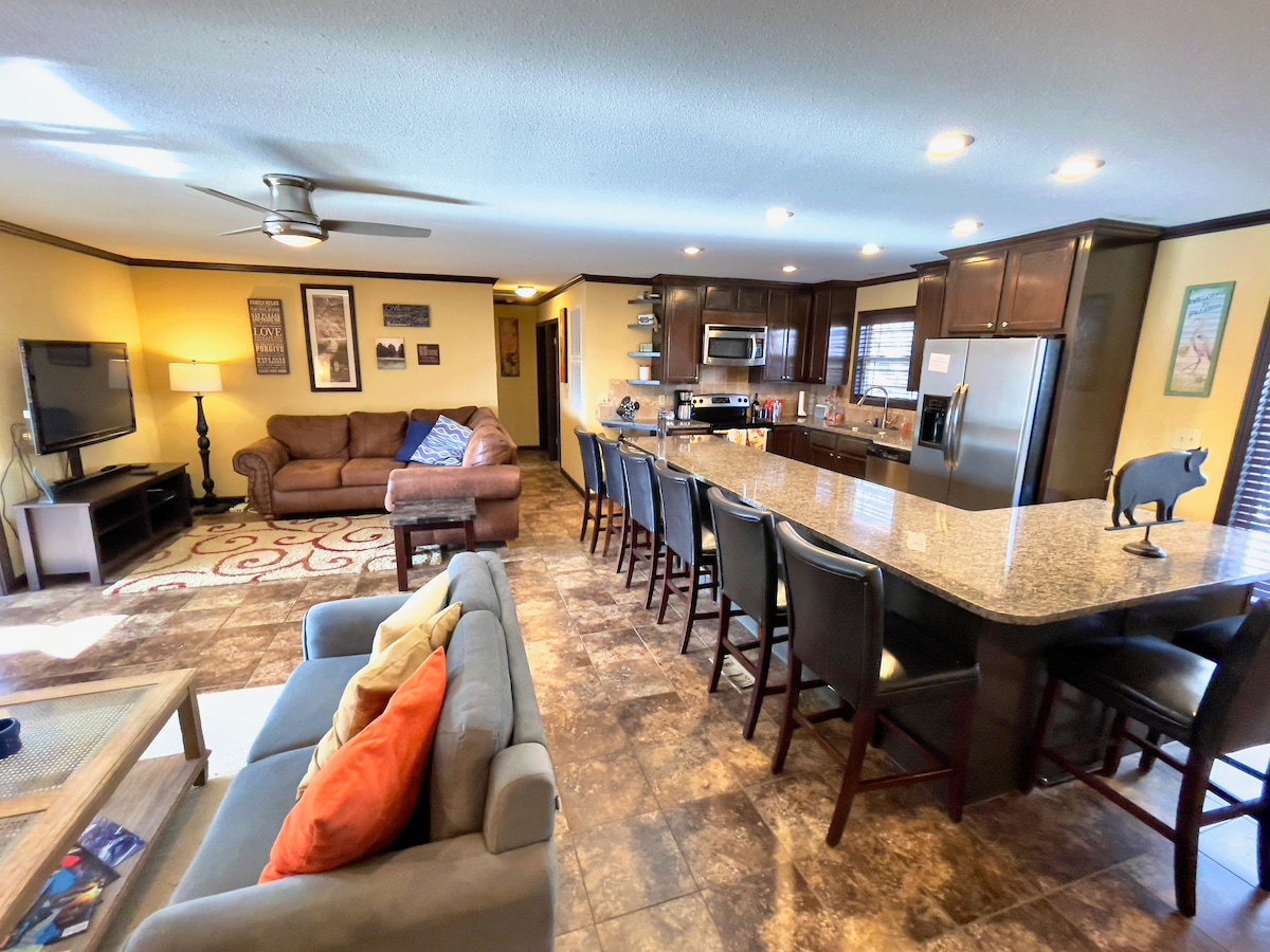 Lakeshore Landing es una casa tranquila y relajante situada cerca de Horseshoe Bend en el hermoso lago Beaver. Nuestra propiedad cuenta con una entrada de cero grados en el lago con una amplia orilla para sentarse y disfrutar mientras ves a tu familia jugar en el lago. Lakeshore Landing tiene 5000 pies cuadrados, con 4 dormitorios, 3 baños, 2 cocinas, 2 salas de estar y muchas más comodidades deseadas. Hay un embarcadero a solo 0,5 millas al sur de la casa. ¡Debes tener 25 años para reservar! **¡El calendario de 2026 ya está abierto!**
