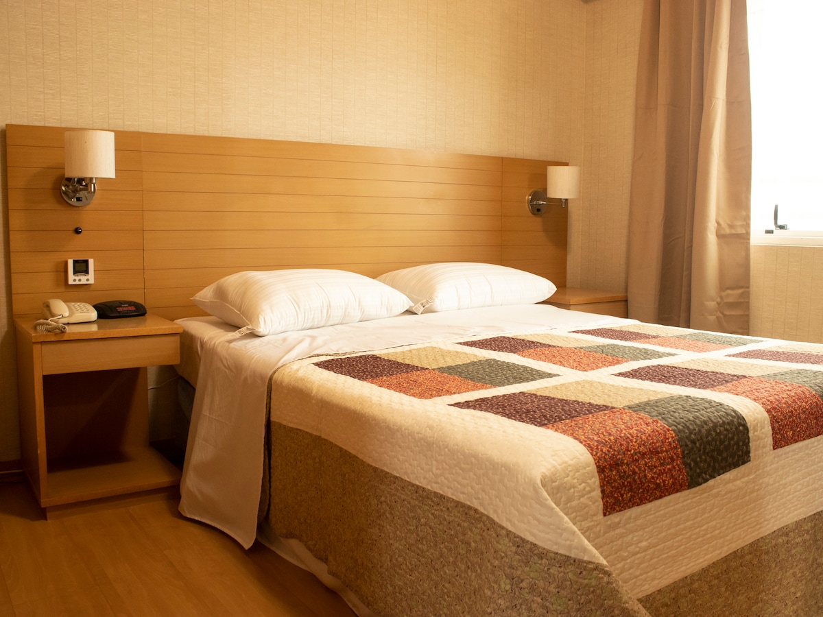 Departamento con minicocina en la mejor ubicación de São Paulo, a una cuadra de la Av. Paulista, a 450 m de la estación Trianon Masp. Con Internet de alta velocidad en el apartamento y una buena mesa de trabajo. TELEVISIÓN de 65 pulgadas. 1 cama King Size O 2 camas individuales, solo háganos saber. Está en un hotel de 4 estrellas con un excelente gimnasio y sauna incluidos en la tarifa. Con plancha y tabla de planchar. Un garaje incluido. 2 restaurantes (uno con increible vista de la ciudad).