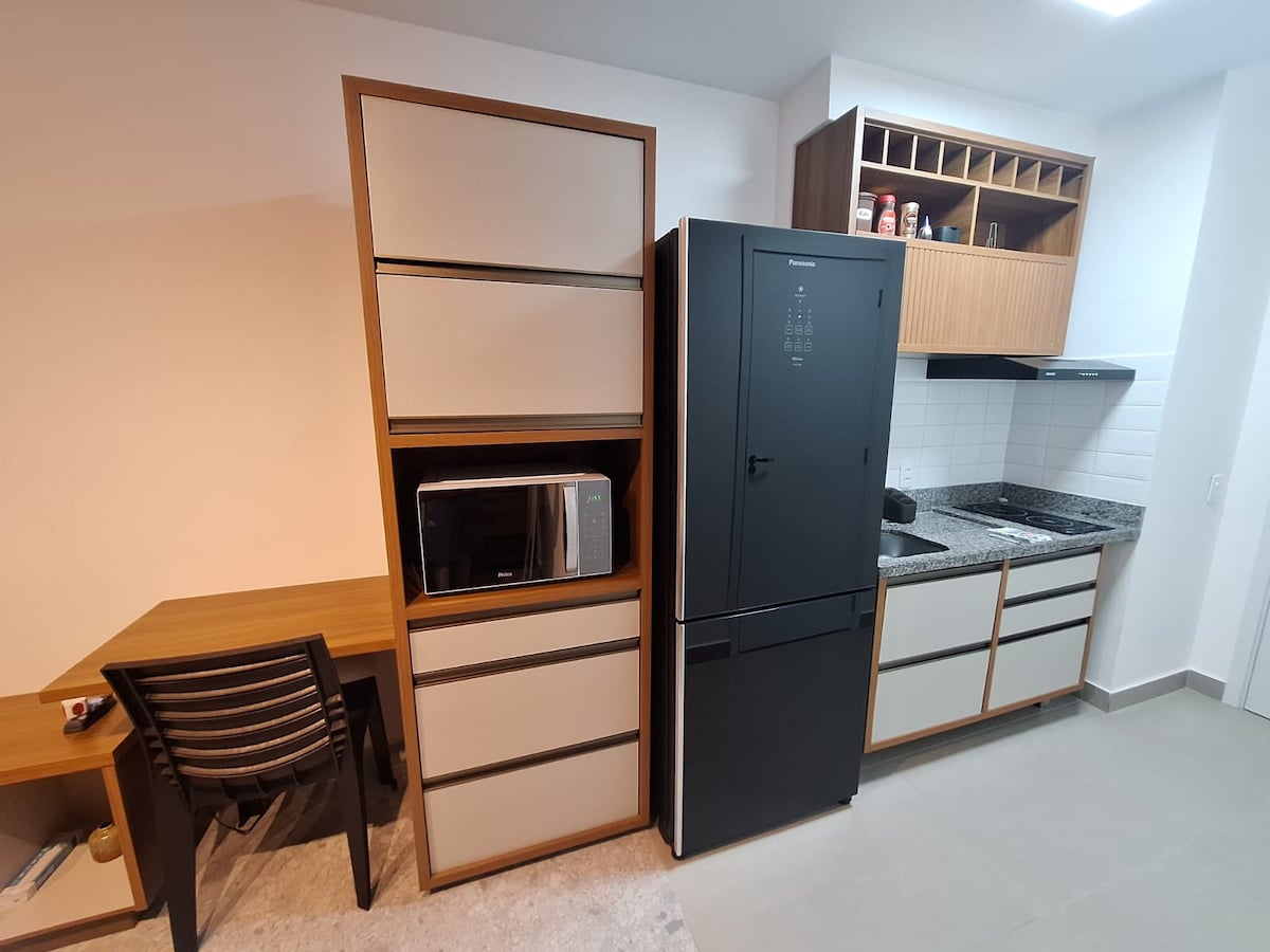 Estudio equipado con cocina y electrodomésticos en la región central de São Paulo. Situado a menos de 5 minutos de la estación de la República (haciendo acceso a otras regiones como Av. Paulista extremadamente fácil y rápido) y varios lugares de interés del centro histórico de la ciudad, por ejemplo, Edificio Copán, Teatro Municipal, Edificio de Italia, Galería do Rock, Barrio Liberdade, etc. El espacio cuenta con Internet y servicios como: lavandería (OMO - paga por separado), piscina y gimnasio.