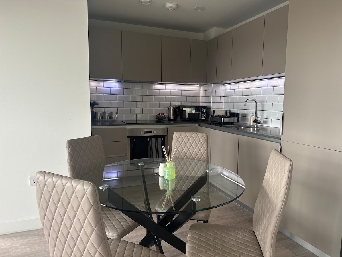 Our Kandy Suite (sleeps up to 6) is a stylish, modern second-floor apartment with Free Parking (1 vehicle) access to fantastic on-site amenities including a Gym, Yoga Studio, Cinema Room (booking required), Outdoor Area and Communal Lounge. Perfect for Contractors, Families, Holidaymakers and Business guests. It’s set in the heart of Bedford town centre—just a short walk to shops, restaurants, pubs, the River Great Ouse and attractions, with excellent transport links nearby.