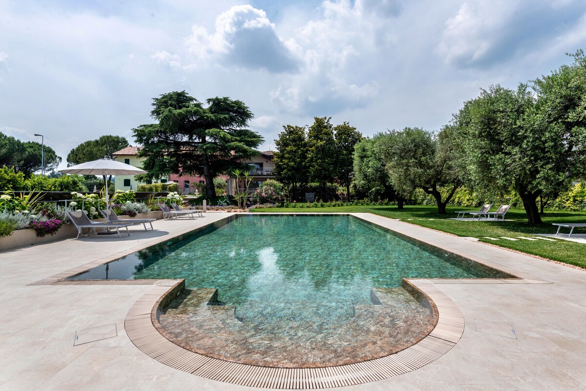 Amplio y luminoso apartamento de 1 dormitorio que forma parte de una residencia privada de finales del siglo XVII. La casa se encuentra en Mocasina, un pequeño pueblo inmerso en la naturaleza colorida y salvaje del valle de Valtenesi, a solo 6 km del lago de Garda. Desayuno casero incluido.