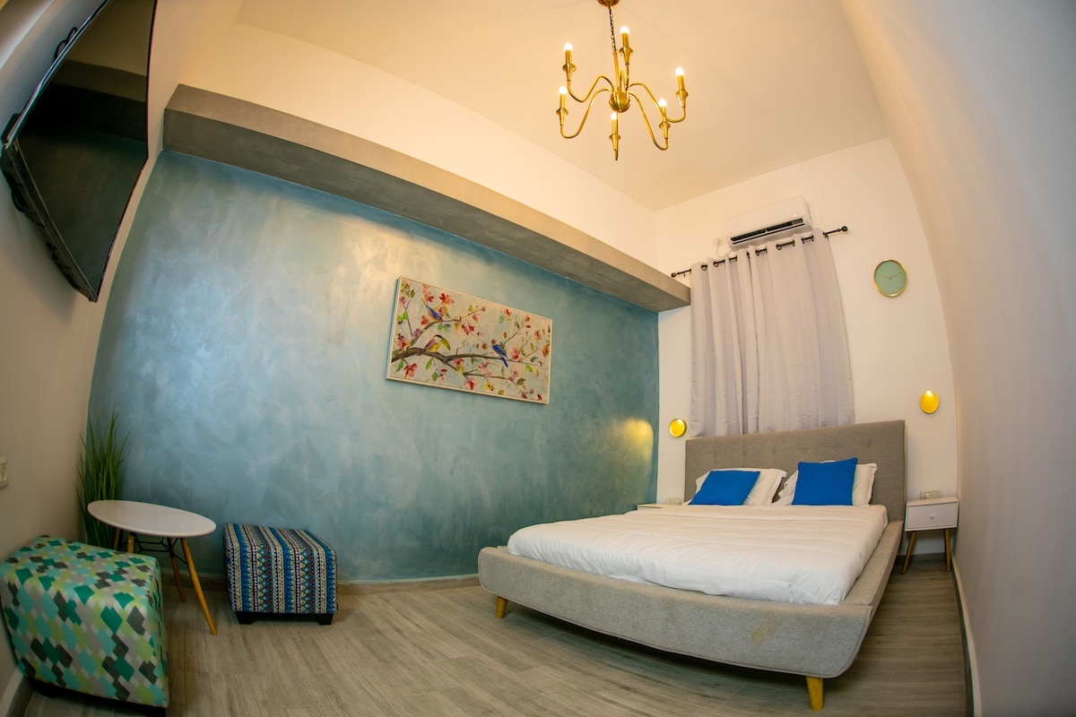 Located at Smilanski st. at the Old City Beer Sheva. a beautiful modern a Luxury Suites Hotel Includes Large suites with modern interior. Be spoiled with all little things you will need - Each suite include oak-wood king bed with premium linens, private bathroom, smart-tv a Nespprsso machine, fresh sparkling water and fruits, chocolates and more. Enjoy a great experience with our quite flowers garden that have a huge Jacuzzi. Welcome to be our guests