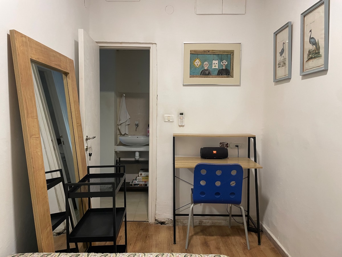 Acogedor y accesible apartamento en planta baja, con entrada privada al apartamento. Situado en el centro de Be 'er Sheva, en el barrio A, con mucho estacionamiento gratuito, vecinos encantadores en una zona tranquila y tranquila. A poca distancia del casco antiguo, el centro comercial Negev, el complejo de locomotoras, el Gran Cañón, el mercado y la estación central. Muchos lugares de entretenimiento a 5 minutos a pie de la zona de la Ciudad Vieja. El apartamento tiene una zona de estar al aire libre con mesa y sillas, un dormitorio con un armario grande y una cama amplia y cómoda y un televisor, en la cocina un refrigerador y microondas, en la sala de estar un sofá con ventilador de techo y un cómodo sofá, en la cara de la ducha y las toallas corporales, jabón de manos. La lavadora se puede arreglar con anticipación con el propietario de la casa.