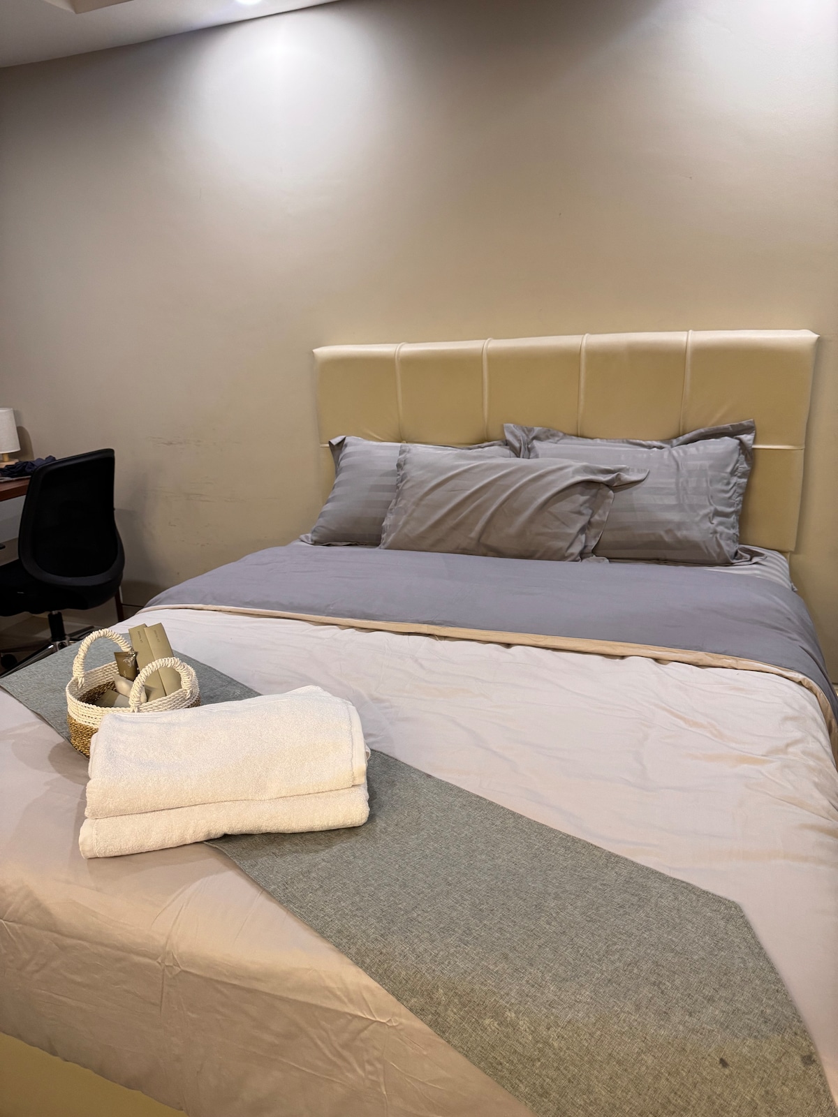 Alójate con comodidad en una cálida habitación estudio con bonitas vistas a la ciudad y a la laguna de al lado. Completada con juego de cocina, cama tamaño queen y espacio de trabajo con acceso wifi ilimitado, tu estancia te sentirás como en casa. Disfruta de diversas instalaciones: piscina, zona de juegos para niños, gimnasio, centro comercial, cine y diversos restaurantes. Por motivos de salud y seguridad de todos los huéspedes, este apartamento se limpia con antisepticos y desinfectante antes de la llegada.