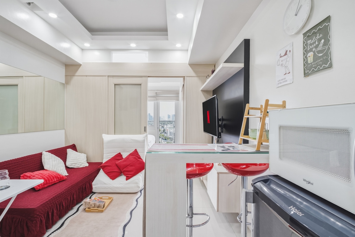 Maravillosamente ubicado en el corazón del distrito de entretenimiento de Makati, nuestro apartamento de 58 metros cuadrados de 1 dormitorio ofrece una amplia sala de estar completa con un televisor inteligente de 55 pulgadas y un aire acondicionado nuevo, 1 dormitorio y un baño completo. El plano de planta abierta combina las áreas de estar y comedor y todo el acceso a la cocina en una sola habitación que puede alojar cómodamente a 4 huéspedes para cenar y socializar.
