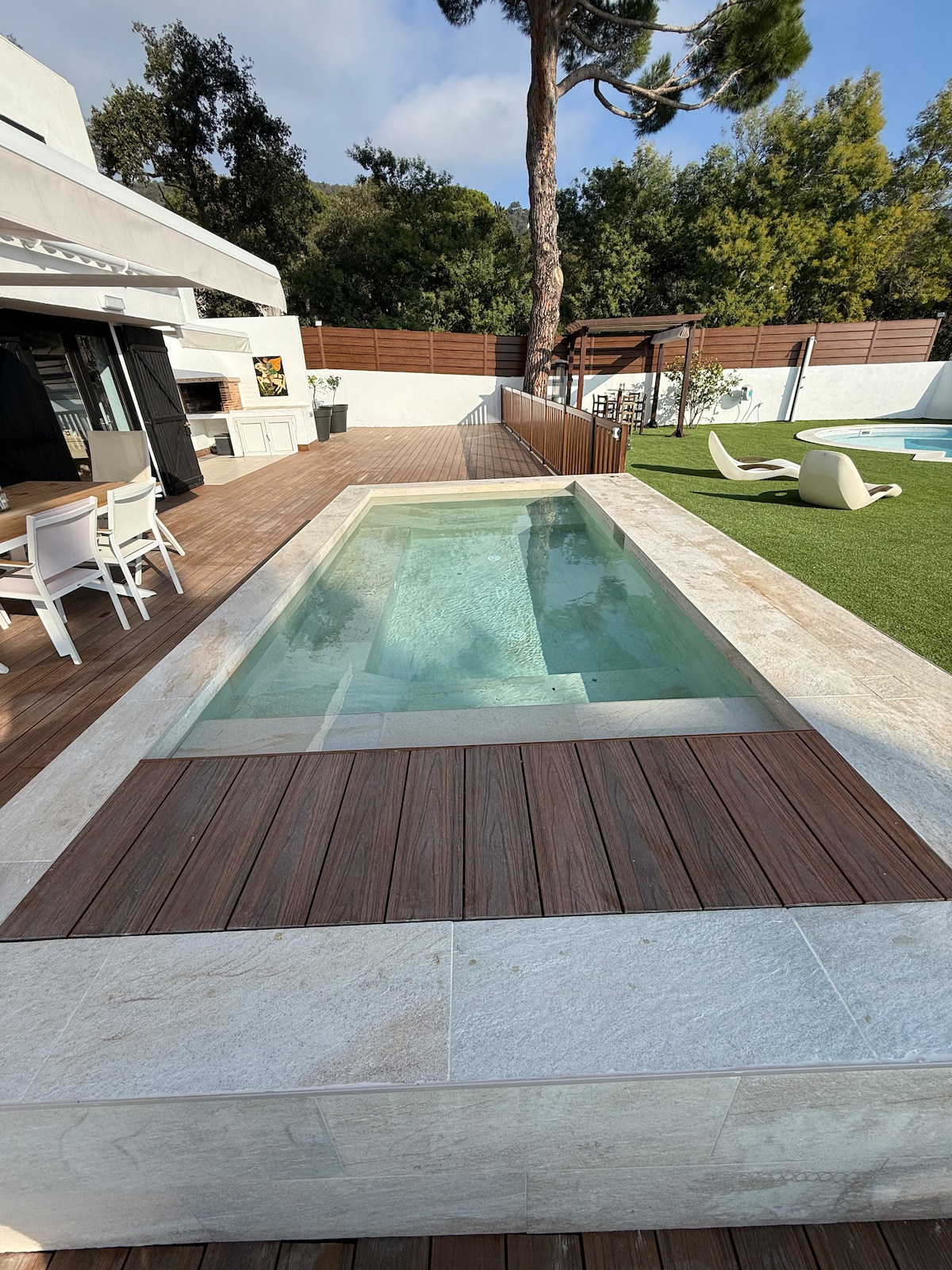 Casita con piscina ideal para familias Acogedora casa de una sola planta, de 75 m², rodeada por un jardín totalmente vallado de 2.000 m², perfecto para que los niños y las mascotas jueguen con total libertad. La casa cuenta con una piscina recién construida de 8x4m de uso exclusivo para los huéspedes. Su interior ofrece un ambiente cómodo y funcional: dos habitaciones dobles, una habitación triple y dos baños completos.