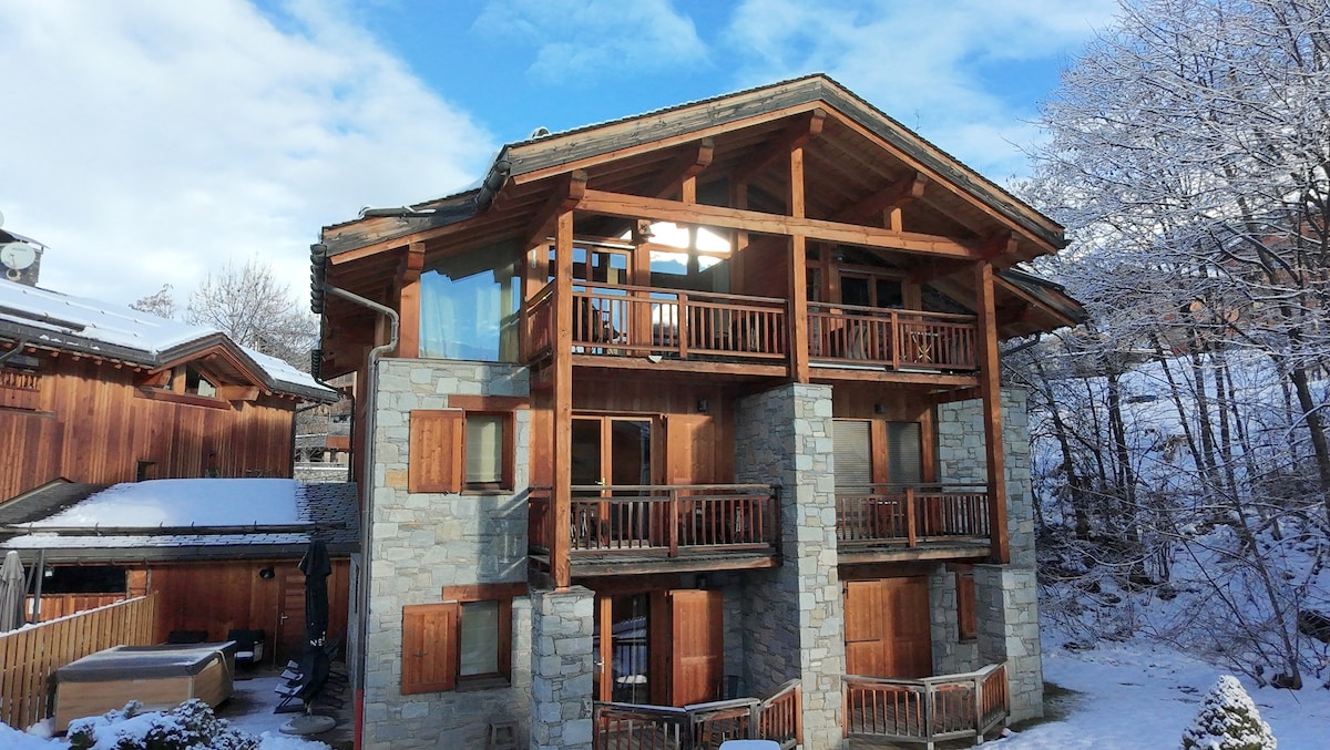 Chalet individual, nuevo, situado en Bozel. Decoración - una mezcla de modernidad y autenticidad. Idealmente situado frente a la parada de autobús para Courchevel, a unos 60 metros del lago de Bozel ( baño vigilado), a 100 metros del centro de Bozel, a 10 minutos en auto del parque nacional de la Vanoise. ATENCIÓN!!! Las actividades ( fuera del parque infantil con toboganes, tirolina y pumptrucks) solo están disponibles durante la temporada de verano (desde mediados de junio hasta principios de septiembre