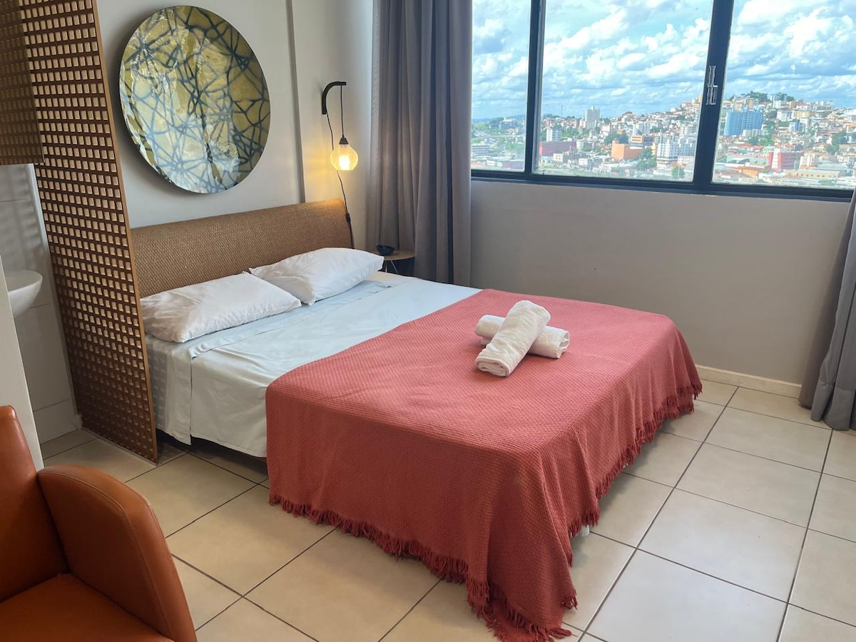 Apartamento localizado no centro de Belo Horizonte, em frente a praça da rodoviária, 19º andar, vista definitiva, portaria 24 horas. NÃO POSSUI ESTACIONAMENTO Apto com ar condicionado, ventiladores de teto, TV Smart 43 polegadas, próximo aos pontos turísticos, supermercado, farmácias, Mercado Central, Parque Municipal, Feira Hippie. Excelente para casais, solteiros e viajantes a negócios na capital mineira. Possui um mini mercado na sobreloja do prédio e academia 16 andar.