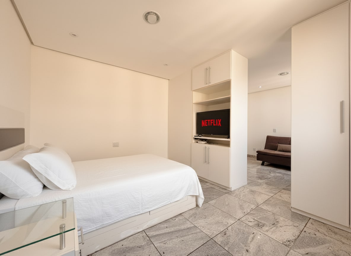 Nosso apartamento tipo loft, com aproximadamente 40m², fica em um prédio novíssimo, super bem localizado, moderno, completo e cheio de facilidades: academia pra manter a rotina, piscina para refrescar, sauna pra relaxar e até um espaço home office. O apartamento é amplo e todo equipado: ar condicionado, internet de alta velocidade, smart TV, cooktop, micro-ondas, geladeira, máquina de lavar roupa e todos utensílios (panelas,pratos, xícaras, toalha, roupa de cama limpinha, etc).
