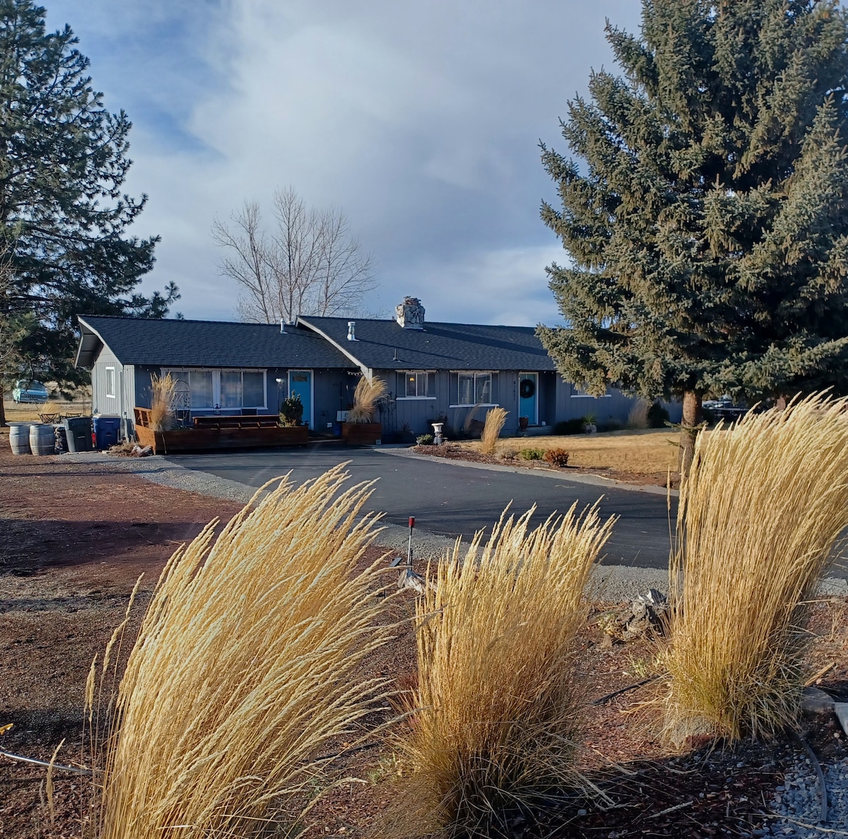 Disfruta de la tranquilidad de nuestra casa de huéspedes. Disfruta de un gran césped, un estanque de riego con terraza para pasar el rato y un lugar para fogatas. Nuestra casa está a 10 minutos en coche del centro de Bend; a 45 minutos del monte Bachelor; a 40 minutos de Smith Rock; a 20 minutos del sendero de Phil para ciclismo de montaña (todos los tiempos son sin tráfico de hora punta). ¡Ven a disfrutar de todo lo que ofrece Bend!