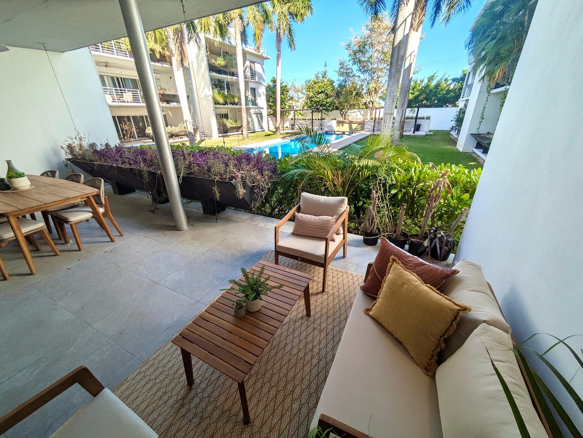 Elegante y hermoso departamento, súper iluminado y equipado con lo necesario para tener una cómoda estancia. Además puedes usar nuestra alberca y el espacioso Lobby. Estamos a 15 minutos del la playa, a 8 minutos del centro de la ciudad y a 15 minutos del aeropuerto llendo en auto. También puedes caminar solo 5 minutos para llegar a varios restaurantes de los que estamos muy cerca. Nos encantará poder recibirte en nuestro espacio!