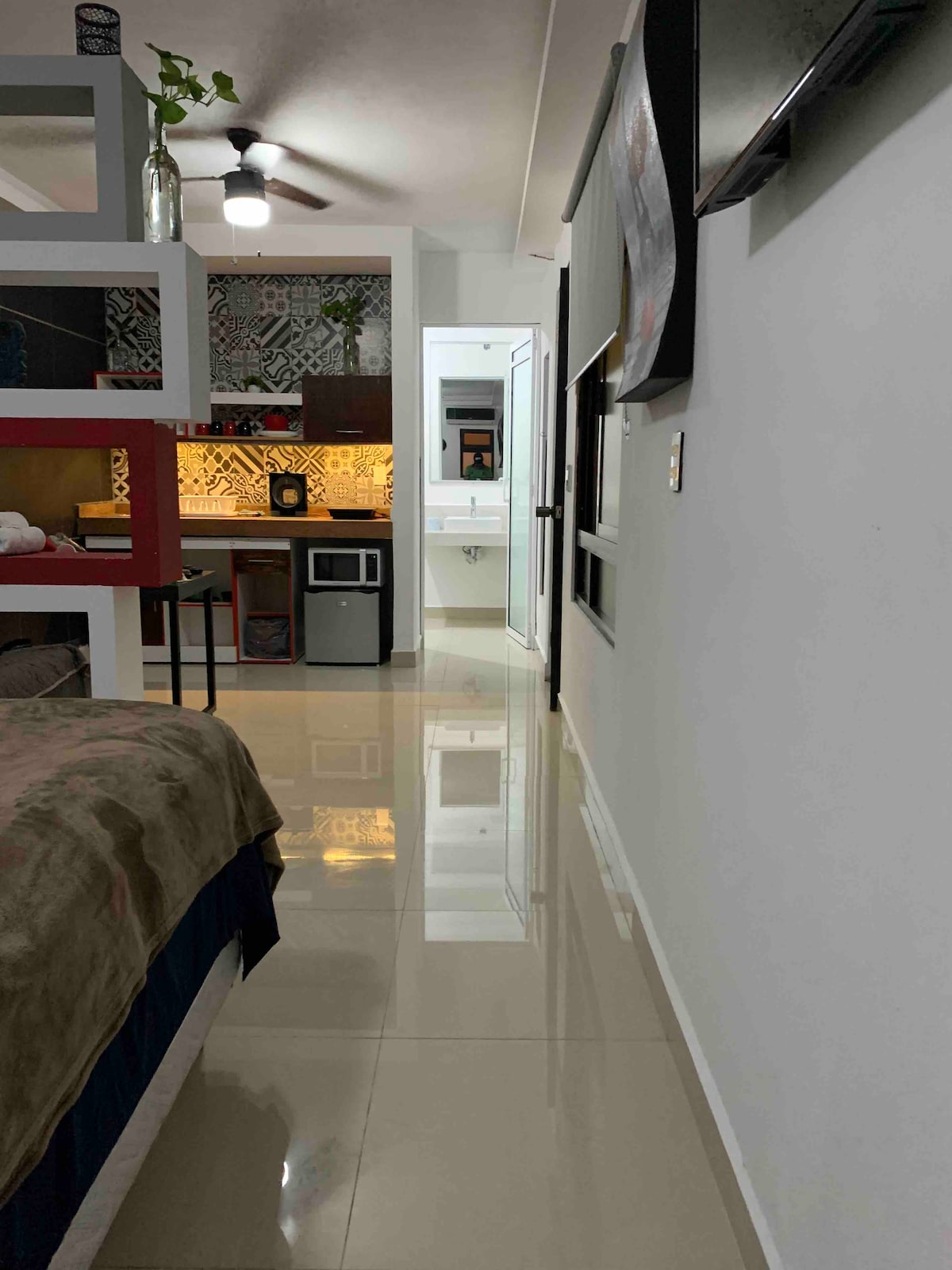 Just a 2.2. Km walk from the Puerto Juárez beach is this private studio located, ideal for getting to know the downtown area of Cancun and the quietest beaches in the area. You'll find just a steps away a local market, restaurants, coffee shops and the bus stop that will take you everywhere. - A solo 10 minutos caminando de la playa Puerto Juárez se encuentra este estudio privado, ideal para conocer la zona centro de Cancún y las playas más tranquilas de la zona.
