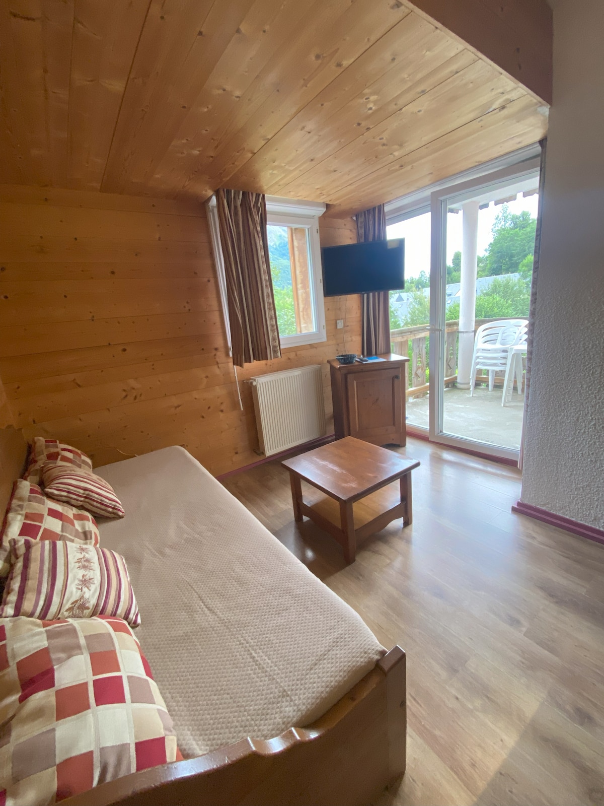 Apartamento familiar en el complejo residencial Lagrange, a 10 minutos del centro de la ciudad y a 8 minutos del telecabina de Lys (a pie, camino de acceso desde el complejo residencial) Aproximadamente 23 m², zona de dormitorio con dos literas (armario, TV) y una sala de estar con sofá cama nido, cocina equipada, baño con ducha e inodoro, terraza cubierta En la 4.ª planta de la residencia (ascensor hasta la 3.ª planta), Piscina semicubierta y climatizada (abierta todo el año, excepto en noviembre), sauna y baño turco gratuitos con reserva previa.