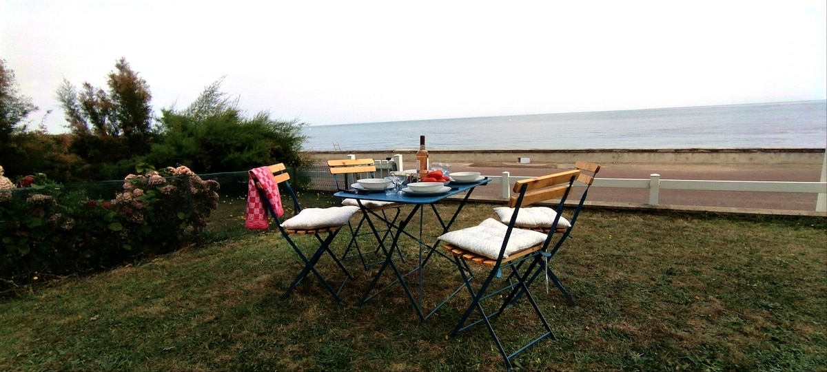 Relájese en este alojamiento único y tranquilo. El estudio se encuentra en primera línea de mar, el edificio tiene acceso directo a la playa. Para los amantes de los deportes acuáticos, un local privado permite almacenar material ( kitesurf, tablas , bicicletas..) Ponemos a su disposición 2 bicicletas bajo petición. Las compras se hacen a pie: Intermarché, panadería, farmacia, restaurante cerca. Para los amantes del marisco, disfrute del mercado diario de Courseulles sur Mer.